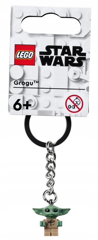 - Брелок Грогу (854187) містить фігурку Грогу LEGO®, прикріплену до міцного металевого ланцюжка та кільця. Примітка: мініфігурку неможливо від'єднати