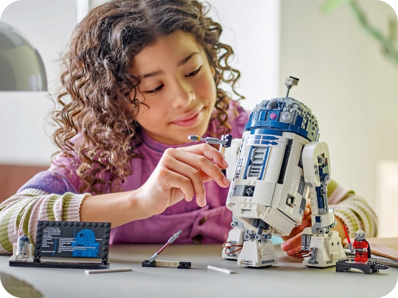- Модель R2-D2 цього 1050-елементного набору має висоту 24 см, шириною 16 см і глибиною 11 см.