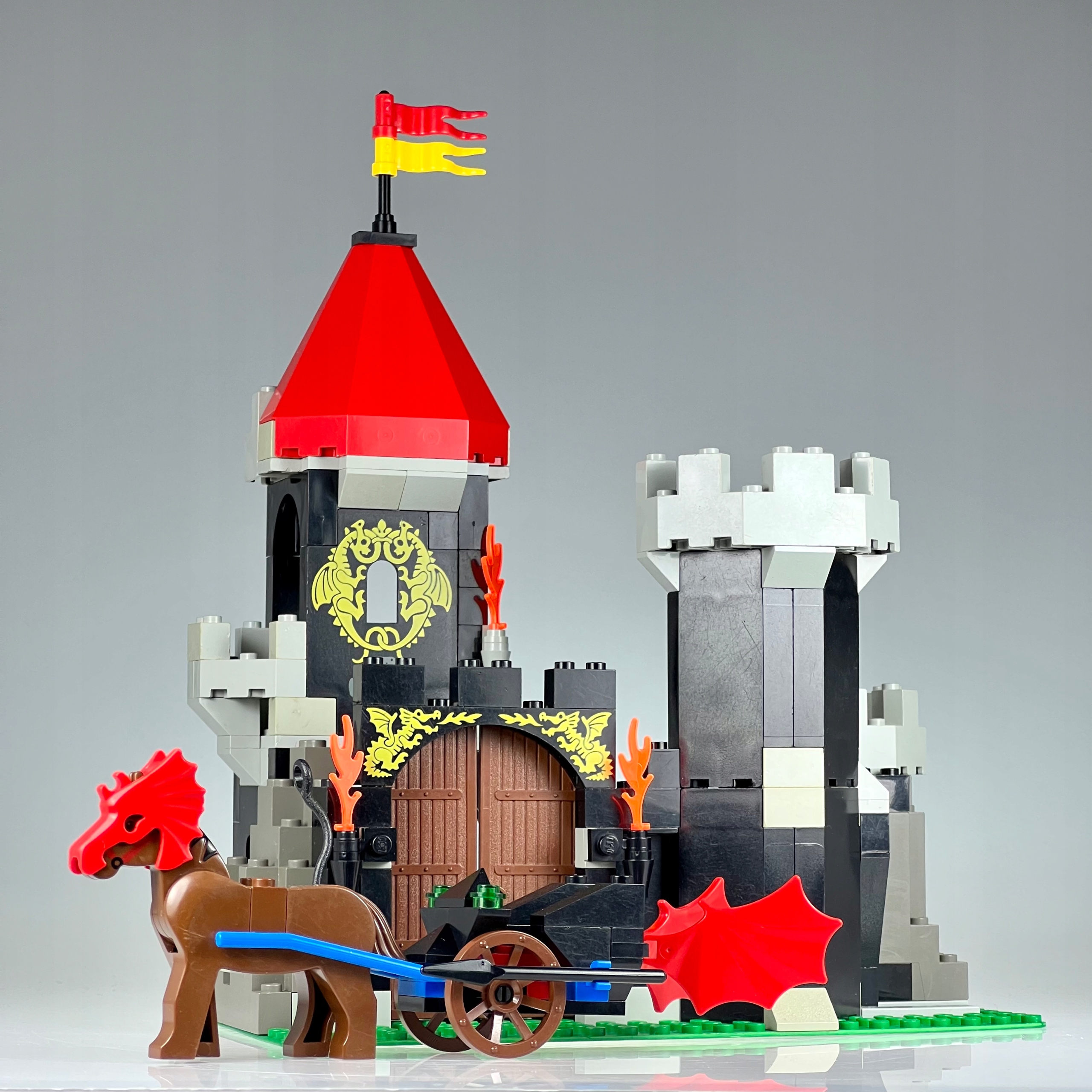 Фігурки та елементи, які вони тримали в їхні руки відсутні. Прапор замінено двома маленькими прапорцями, сходи замінено іншим прапором, спис у причепі коня чорний замість коричневого. Крім того, тут є кожна окрема цеглинка, навіть найменша, включно з аксесуарами.