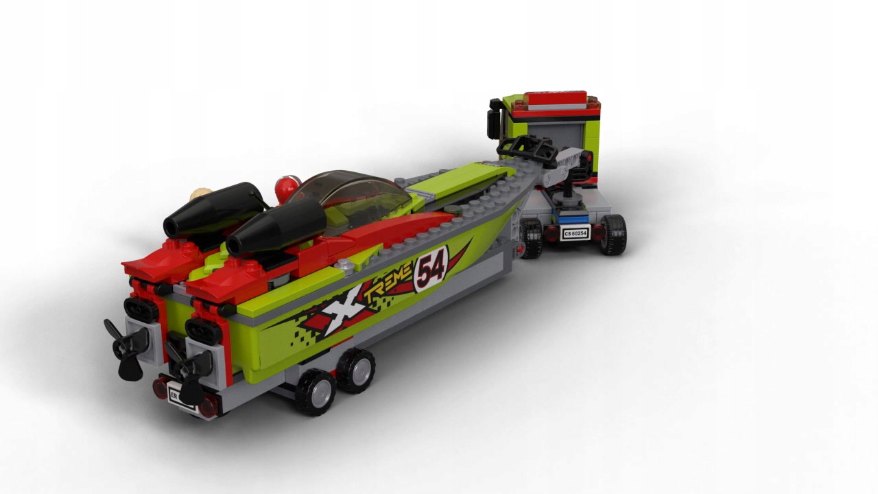 Все божевільно в місті Lego City, встановлений транспортер гоночного човна (60254), що містить сильний транспортер та аеродинамічний, реактивний гоночний човен, який справді пливе на воді. Для цієї мініфігура водія транспортера та кермана екстремального гоночного човна- є все, що вам потрібно для незабутньої гонки! Дітям сподобається побудувати плаваючий човен!