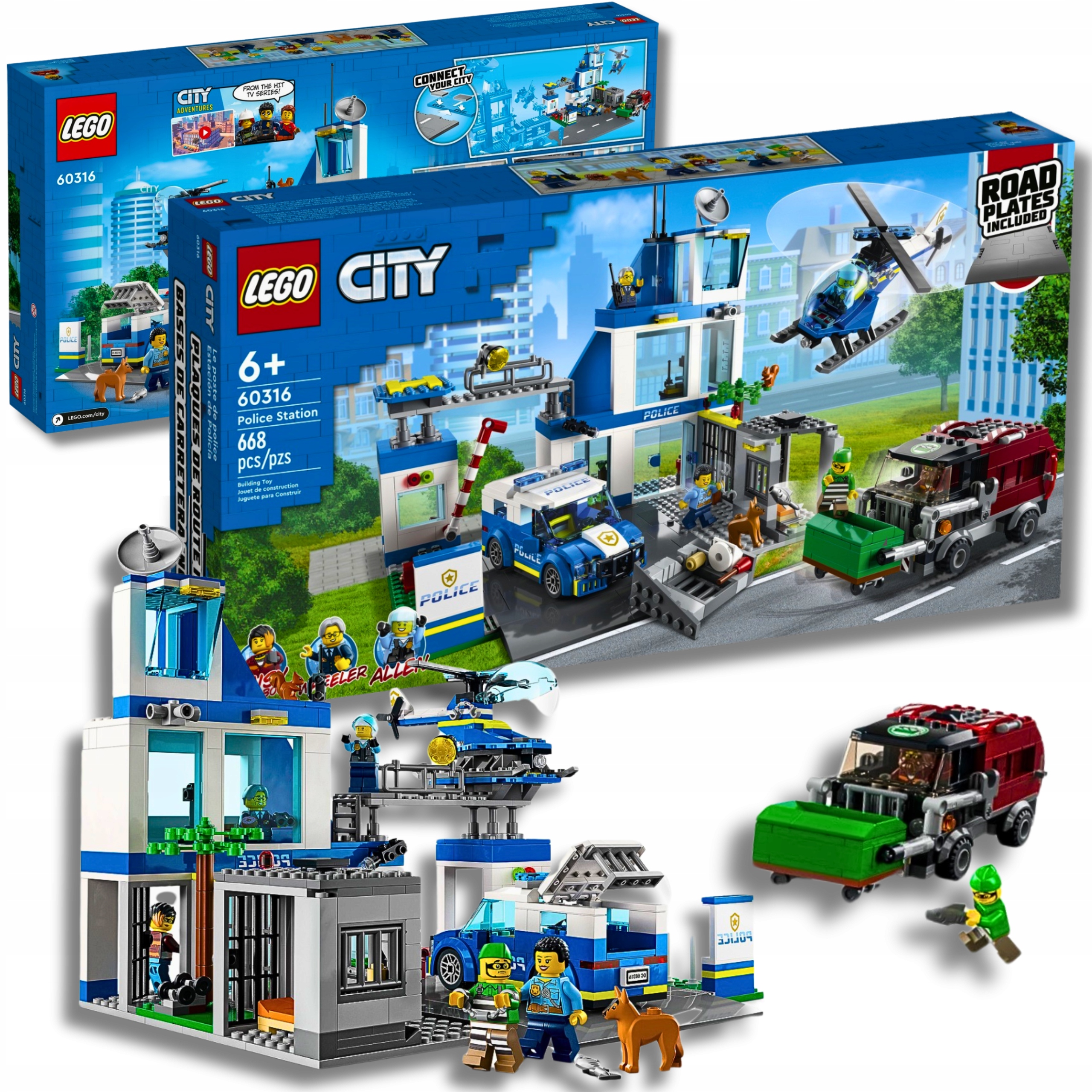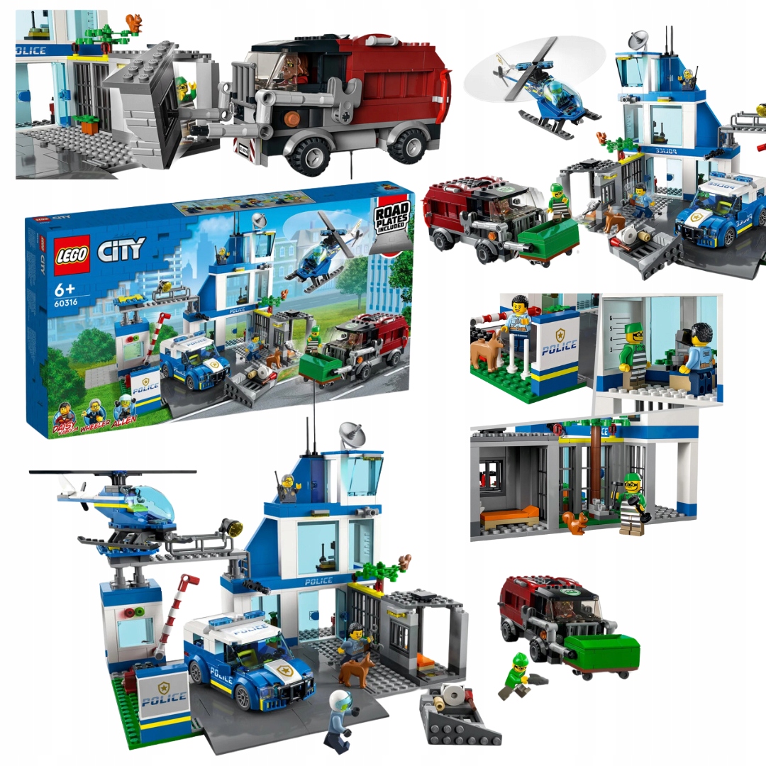 Двоповерхова поліцейська дільниця LEGO® City 60316 має багато надихаючих деталей, зокрема камеру з функцією евакуації, зону для розгулу злодіїв і зону для дресирування собак. У набір також входить поліцейська машина, гелікоптер і модифікований сміттєвоз злодіїв, а також дорожня плитка, яку можна комбінувати з іншими наборами.