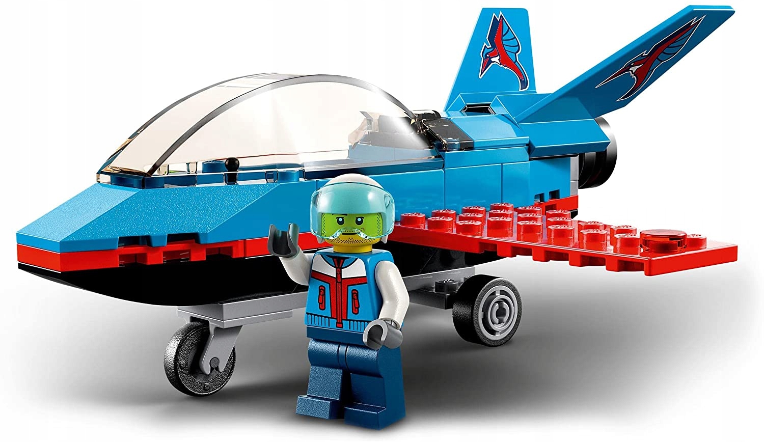 Дозвольте фантазії вашої дитини злетіти з набором LEGO® City Stunt Plane (60323). Цей барвистий реактивний літак має великі плавники та палаючий двигун ззаду. Кабіну можна відкрити, щоб посадити пілота-каскадера та вирушити разом у захоплюючі повітряні пригоди.