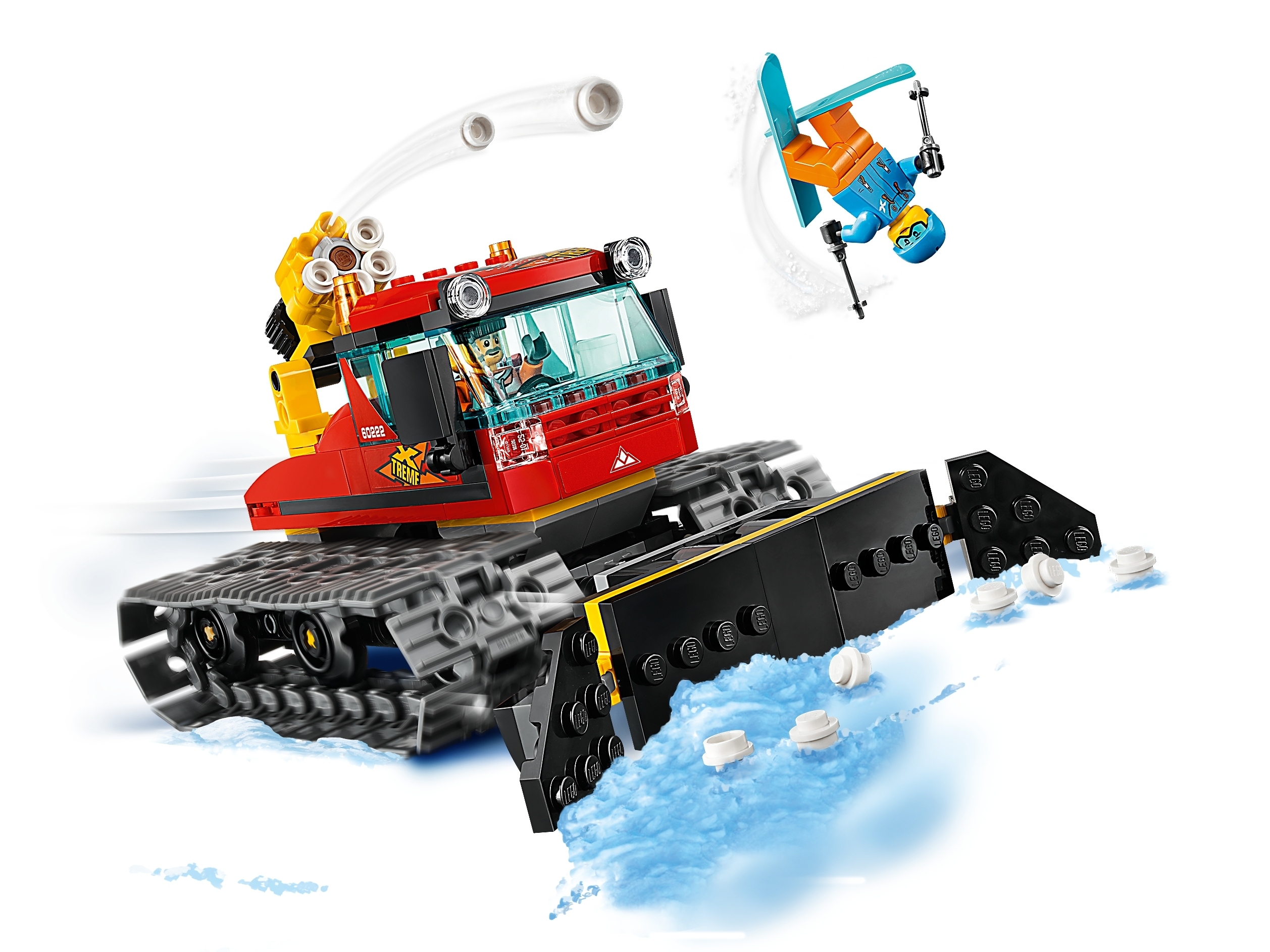 - Детальний гусеничний плуг має мініфігурну кабіну, що відкривається, дах, що відкривається, потужні секційні гусениці, велике переднє лезо та обертову снігову гармату, що швидко стріляє, на шість осіб. блоки.