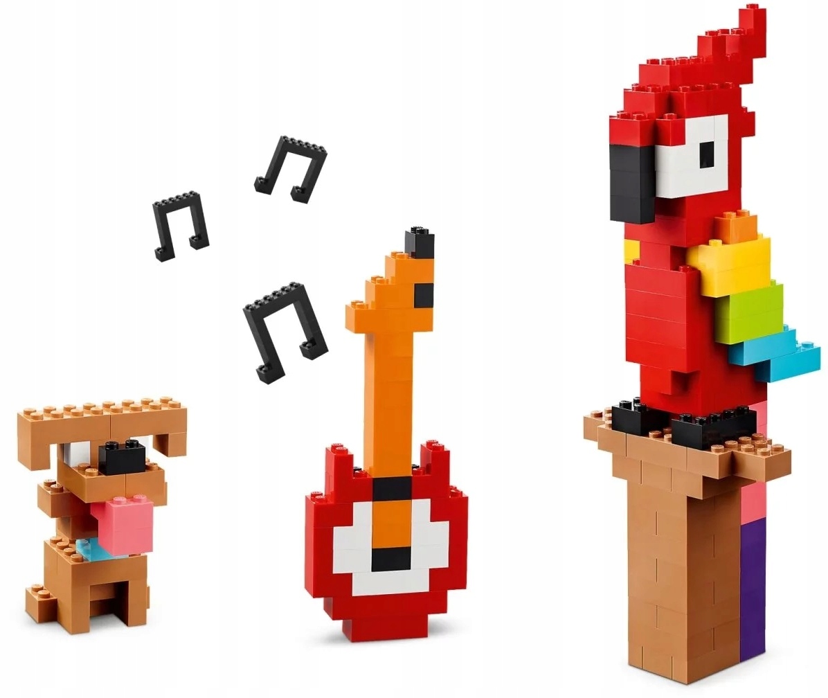 Набір містить багато блоків LEGO у яскравих кольорах - оригінальний і дуже популярний блок 2x4 приділяє особливу увагу! Набір включає чіткі, друковані інструкції щодо побудови кумедних моделей, включаючи машину, земну кулю, квітку, серце, гітару, будинок, емоджі, папугу, собаку та яблуко. Цей набір - заохочувати безкоштовну, творчу забаву.