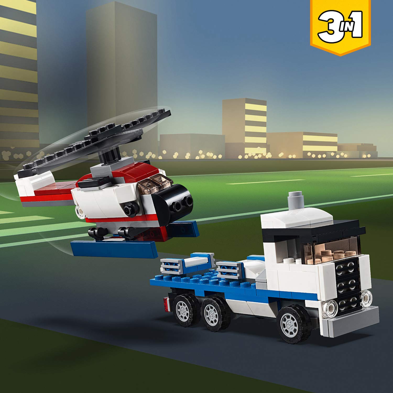 - Набір LEGO® Creator 3in1 дає змогу побудувати три різні моделі. Побудуйте транспортер космічного шатла, а потім перебудуйте його на крутий транспортер вертольота або транспортера-каравана.