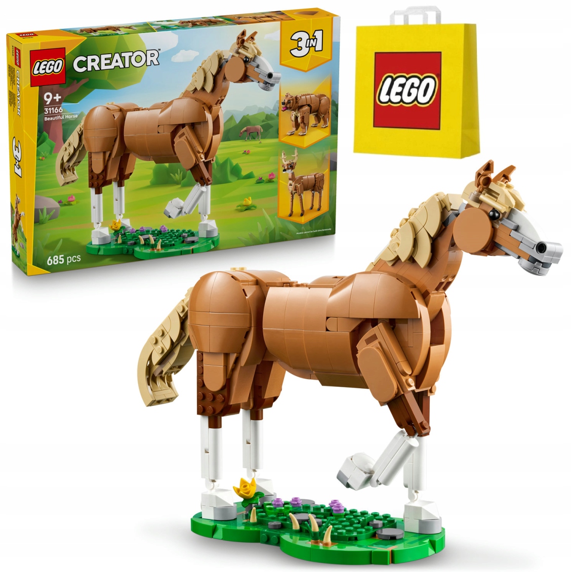 Дівчата та хлопчики з 9 років, які люблять тварин, чекають багато годин кумедних історій з набором прекрасним конем (31166). Цей рухомий кінь може перемістити голову, шию, стегна, копит, хвіст і одне коліно і розміщується на килимку з ефектом трави, на яку діти можуть поставити його в 3 різні положення: стоячи на 3 або 4 ногах або на 2 задніх ногах. Ведіть з невеликою моделлю водоспаду та рухомим елегантним оленем козу. Усі 3 статуетки тварин у цьому наборі реконструкції є креативними та смішними подарунками для дітей.