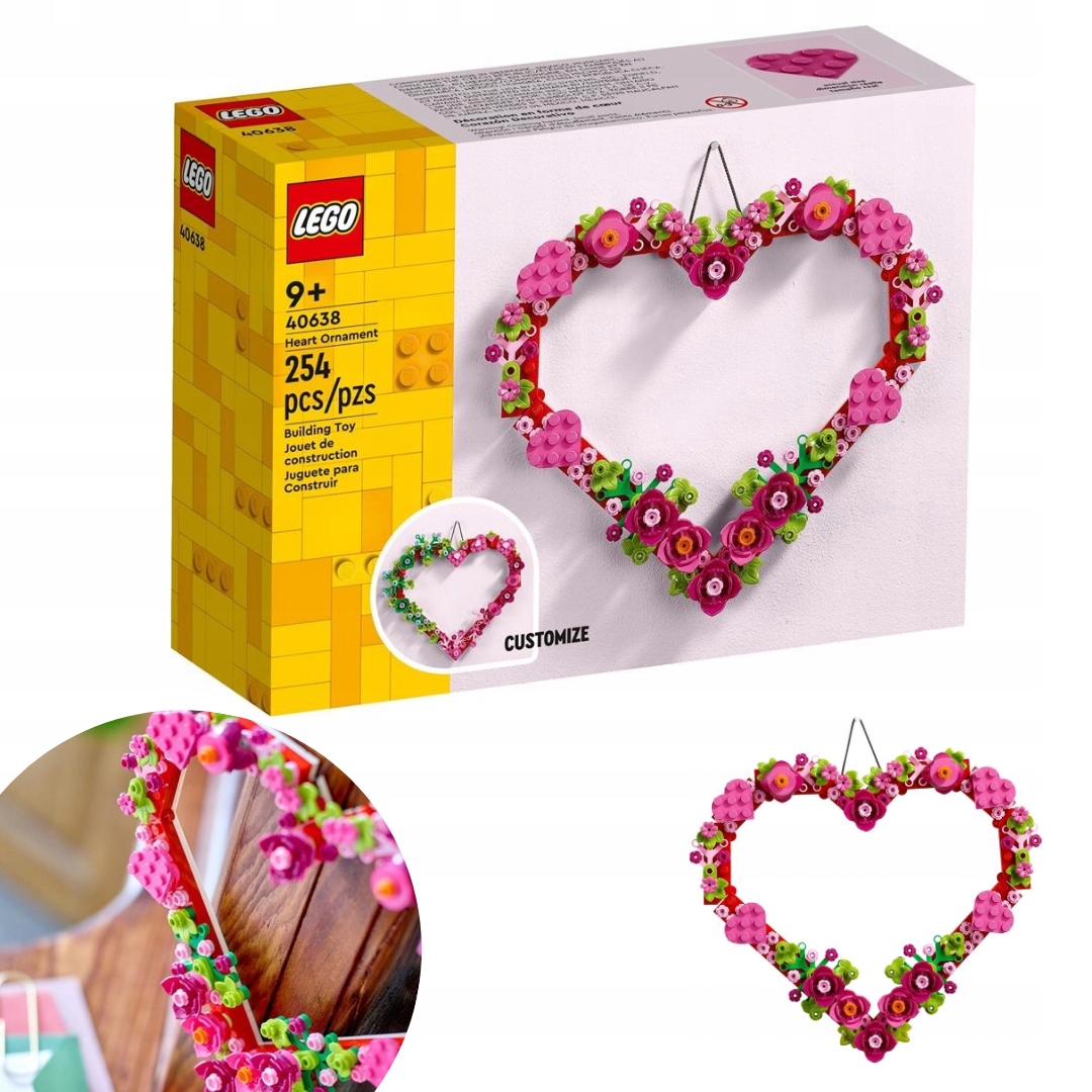 Представлений вам продукт — це прикраса у формі серця від LEGO. Після створення серце можна використовувати як прикрасу для дому чи офісу на День Святого Валентина, День матері, День батька та інші події. Набір містить 254 елементи, включаючи вішалку та додаткові аксесуари для персоналізації серця. В інструкціях зі створення та на упаковці є два зображення, які можуть надихнути. Прикраса може стати продуманим подарунком на багато випадків. Цей набір стане ідеальним подарунком на день народження або сюрпризом для дітей віком від дев'яти років. Не чекайте більше та замовте сьогодні за цією привабливою ціною!