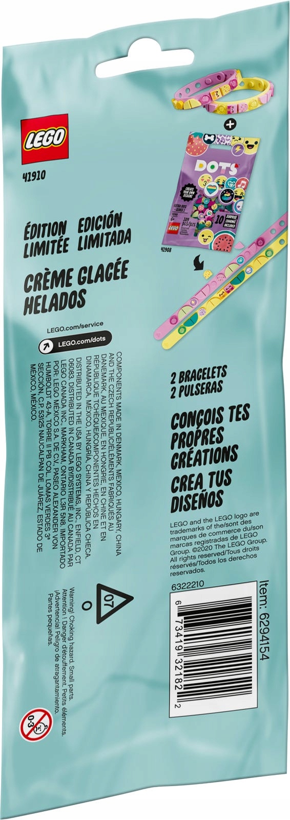 - Подаруйте своїй дитині лімітований набір LEGO® DOTS «Браслет з морозивом для друзів» (41910), який включає два регульованих одинарних стрічки та 32 різнокольорові плитки, щоб зробити унікальний браслет дружби!