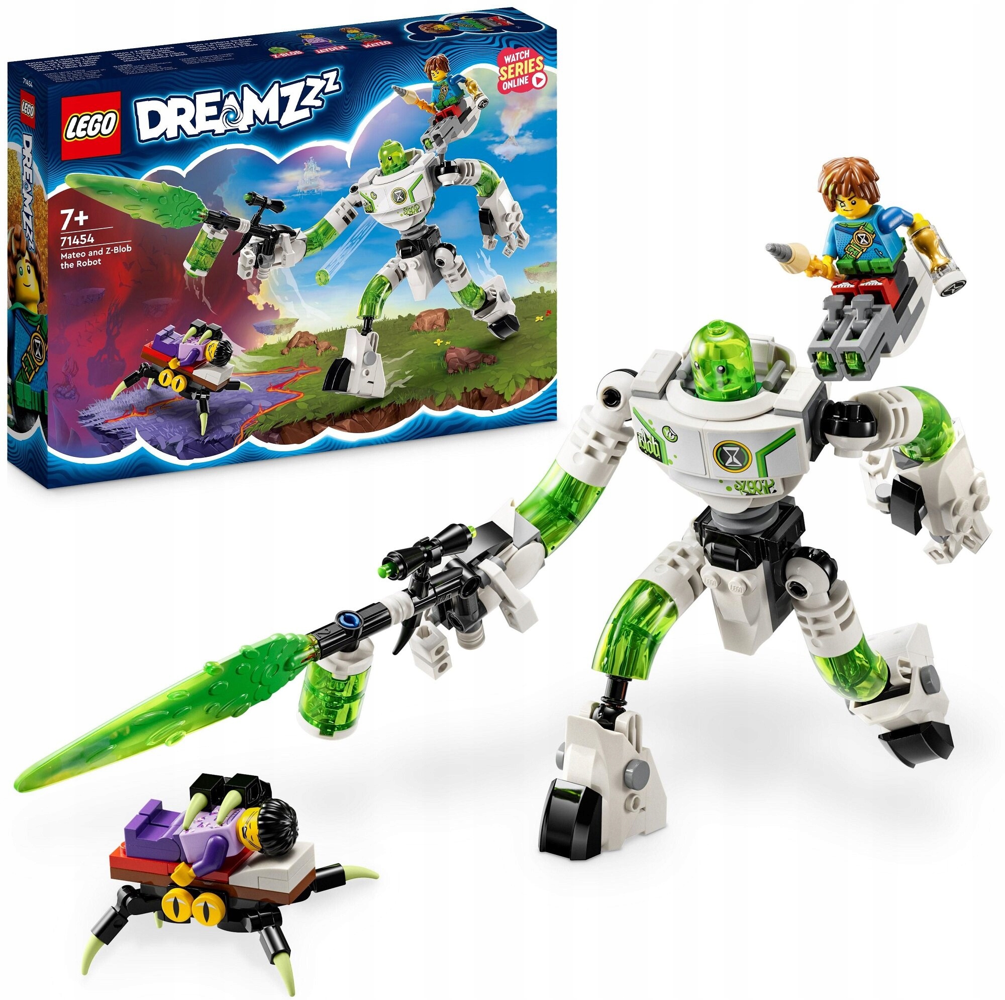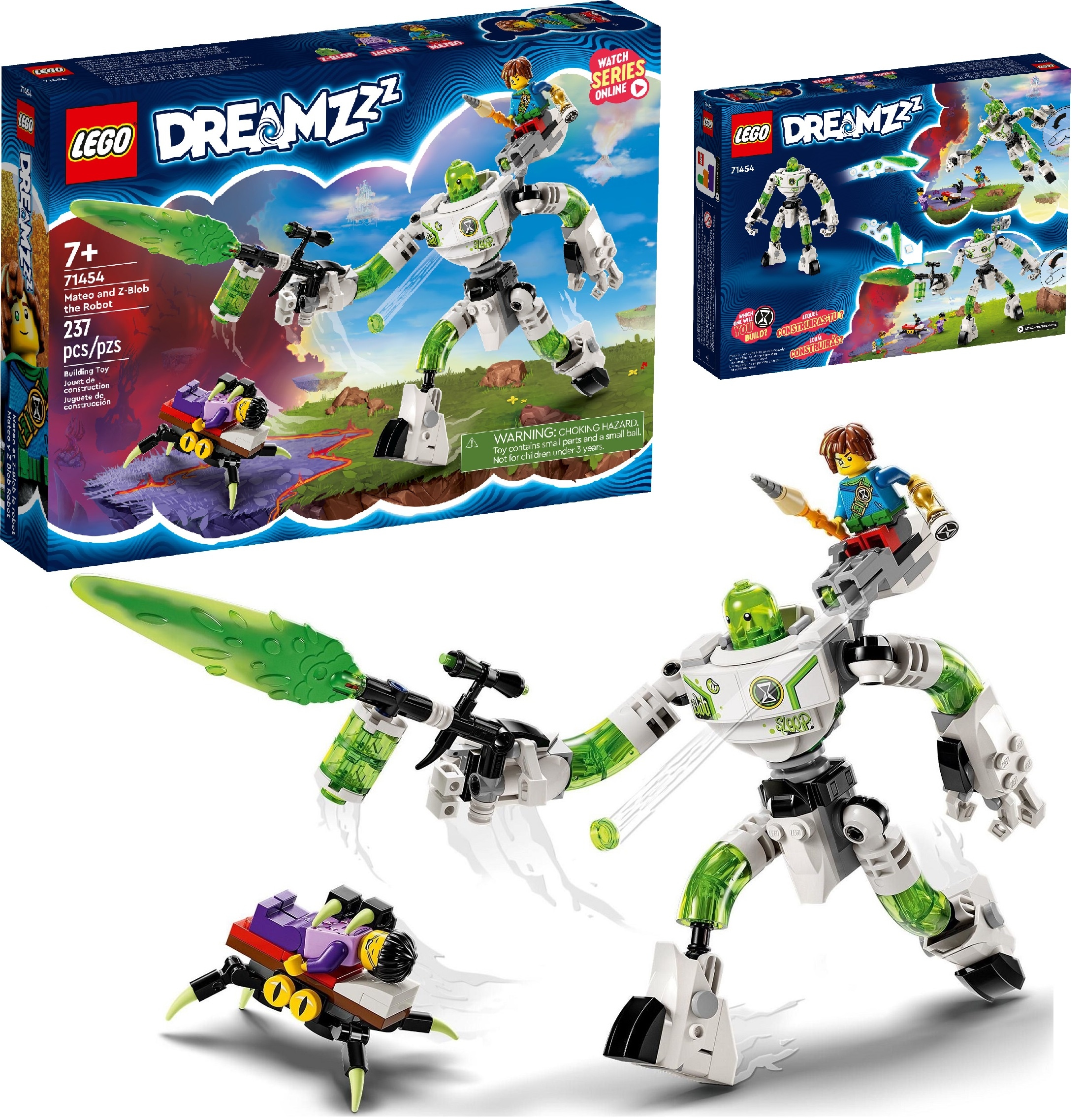 З набором LEGO® DREAMZzz™ Матео та роботом Z-Blob діти віком від 7 років можуть поринути у світ мрій. За мотивами телесеріалу "DREAMZzz" цей набір дозволяє дітям перетворити Z-Blob на крутого робота, щоб допомогти Матеоврятувати Джейдена, якого викрало кошмарне чудовисько.