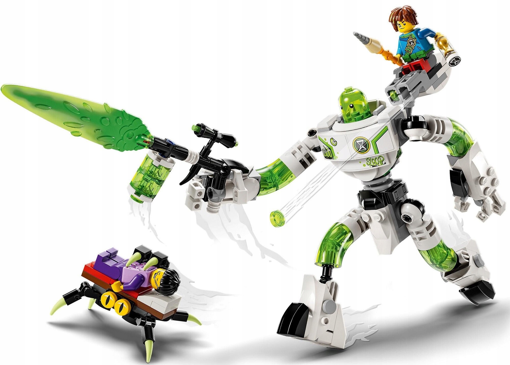 Великий робот Z-Blob має повністю рухливе тіло, руки й ноги. Діти можуть використовувати аксесуари, що входять у комплект, щоб додати стрільців на руки та руки або реактивний ранець і шолом. Це зробить задоволення ще веселішим. Крім того, набір містить деталізовані мініфігурки Матео та Джейдена. Серед їхніх аксесуарів ремінь, тростина-олівець і пісочний годинник, які важливі для їхніх персонажів у серіалі.