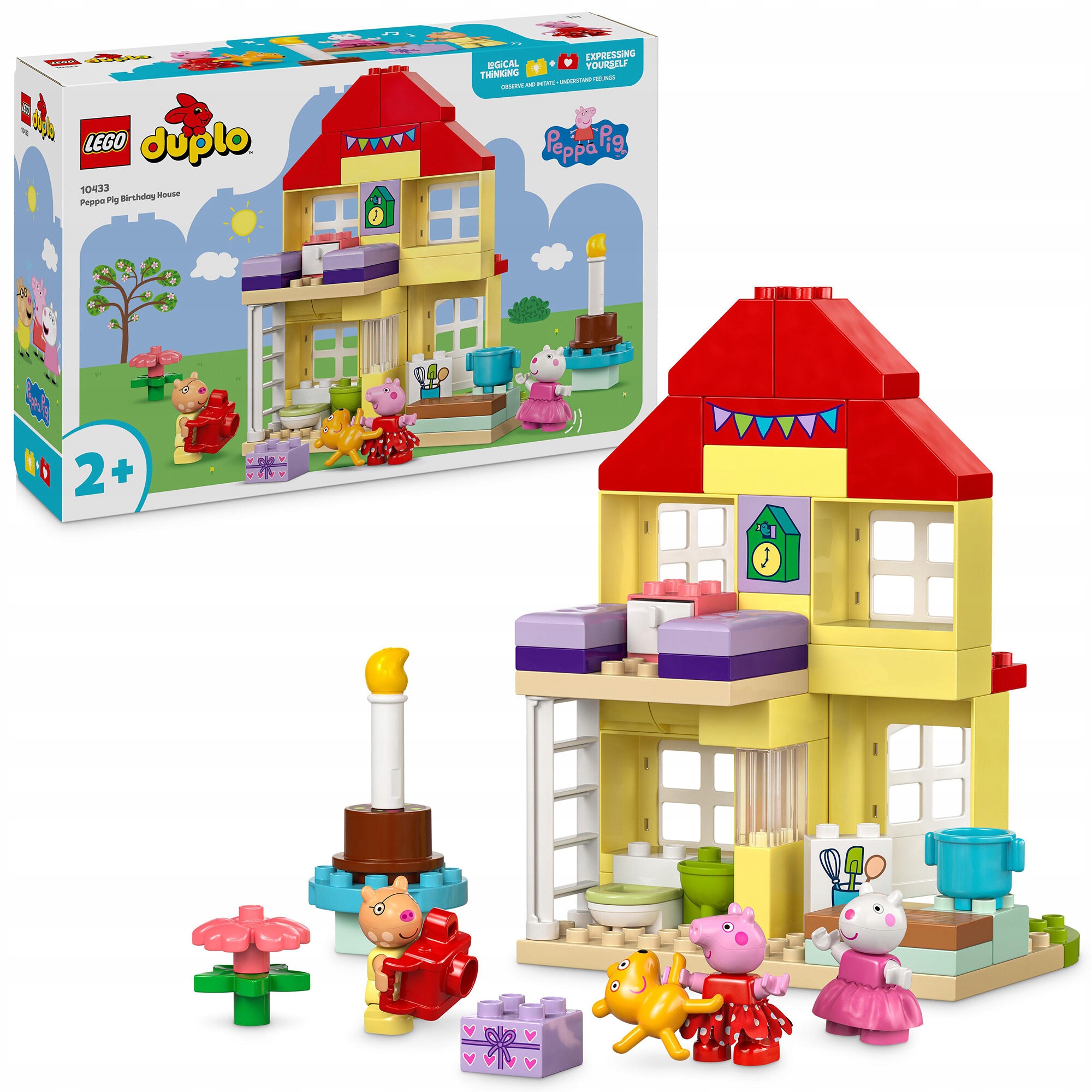 Набори для збирання та відновлення LEGO® DUPLO® з Пеппою створені для заохочення дітей дошкільного віку до розвитку різноманітних навичок. Маленькі діти розвивають логічне мислення, імітуючи реальне життя та виконуючи вечірні дії, наприклад вітаючи друзів, даруючи подарунки та розрізаючи торт. Вони також розвиваютьздатність виражати себе, уявляючи, як це було б бути частиною радісної події.