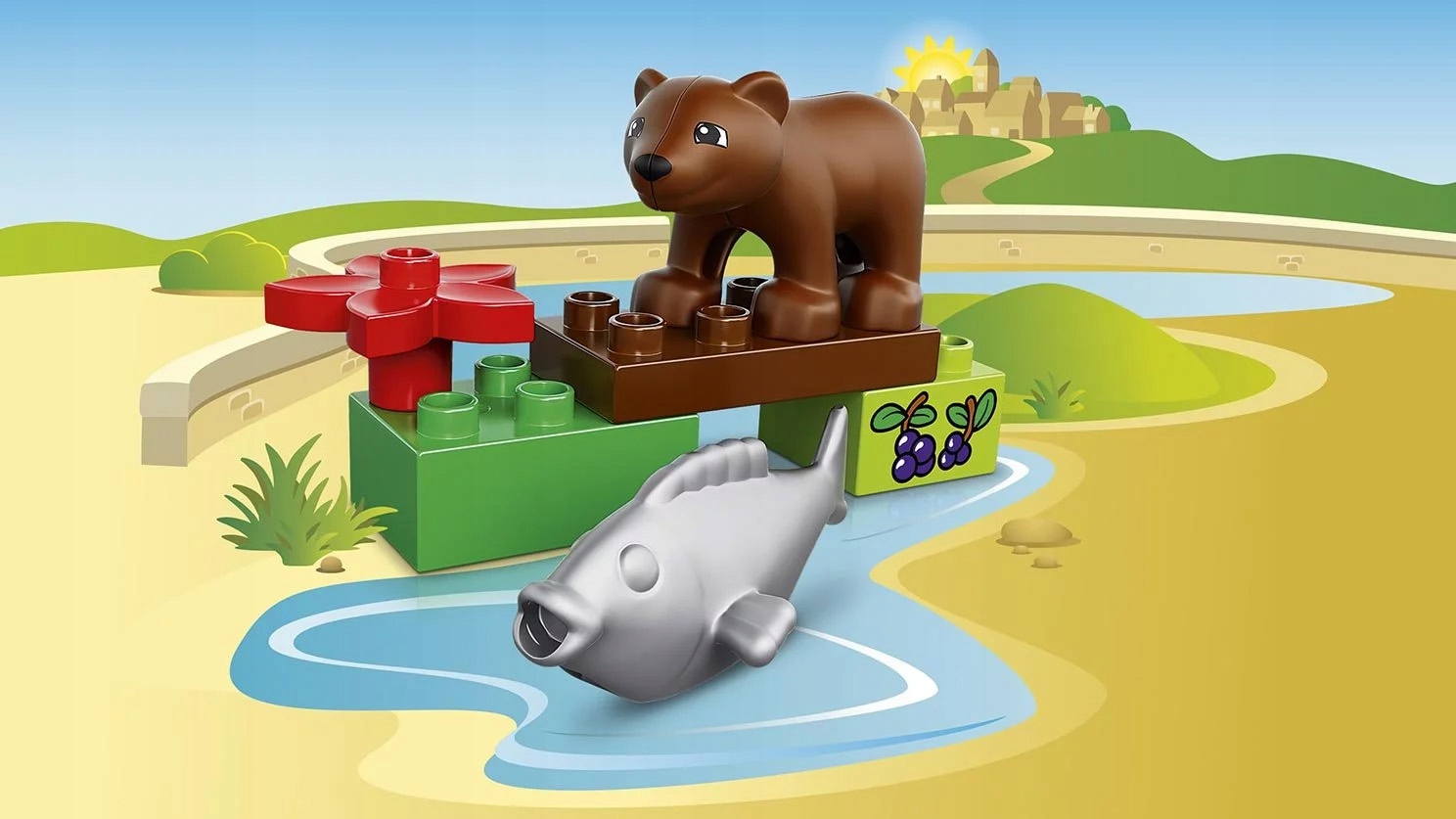 Набір включає коричневий ведмідь, рибу, квітку та вибір блоків Duplo з та без. Це допоможе дитині опанувати основні навички складних блоків.
