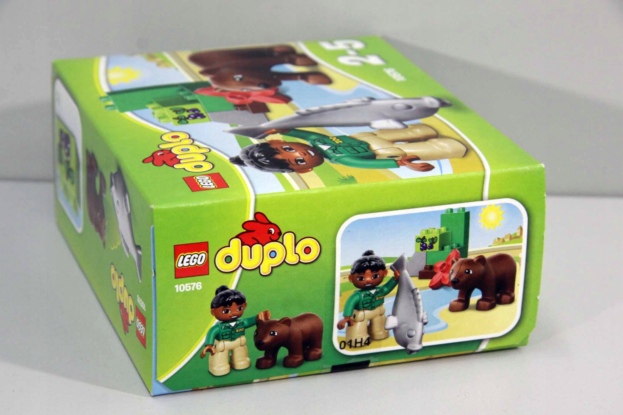 Набір Lego Duplo - няня в зоопарку надійшла у продаж у 2014 році. Номер каталогу цього набору - 10576. Він містить 9 блоків LEGO. У моделі ви також знайдете 1 мініфігуру. Назва набору англійською мовою Lego Duplo - догляд за зоопарком. Вікова група цього продукту - 2+.