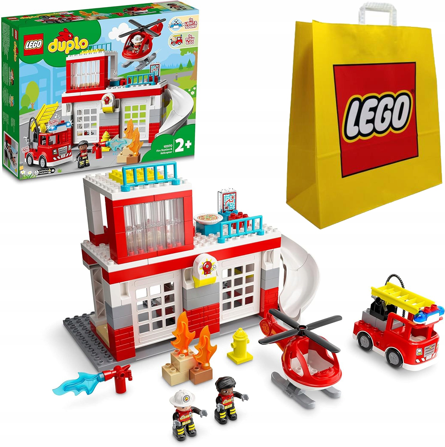 LEGO Duplo 10970 Remiza strażacka i helikopter + B.Duża Torba Lego