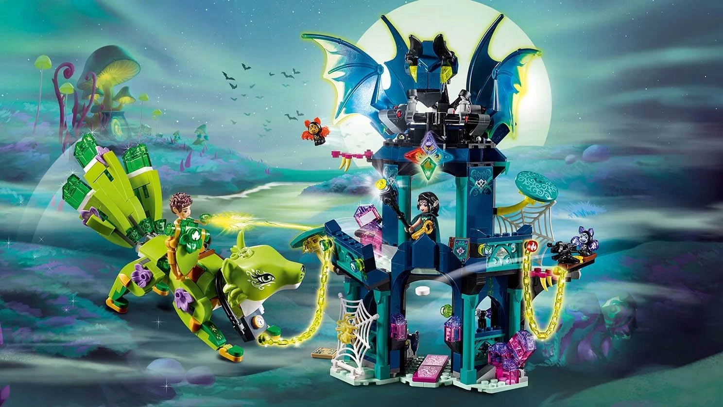 Цей фантастичний набір LEGO® Elves для творчих ігор включає повністю розсувну, складну фігурку лисиці з відкритими щелепами та рухливими ногами, головою та напівпрозорим хвостом. Також є двоповерхова вежа з розкриваючими крилами кажана, рухома голова, павутинна пастка, дисковий шутер, місце для чотирьох стихійних «алмазів» і додаткових аксесуарів. Включає 2 фігурки міні-ляльок, фігурку павука та 2 фігурки кажанів.