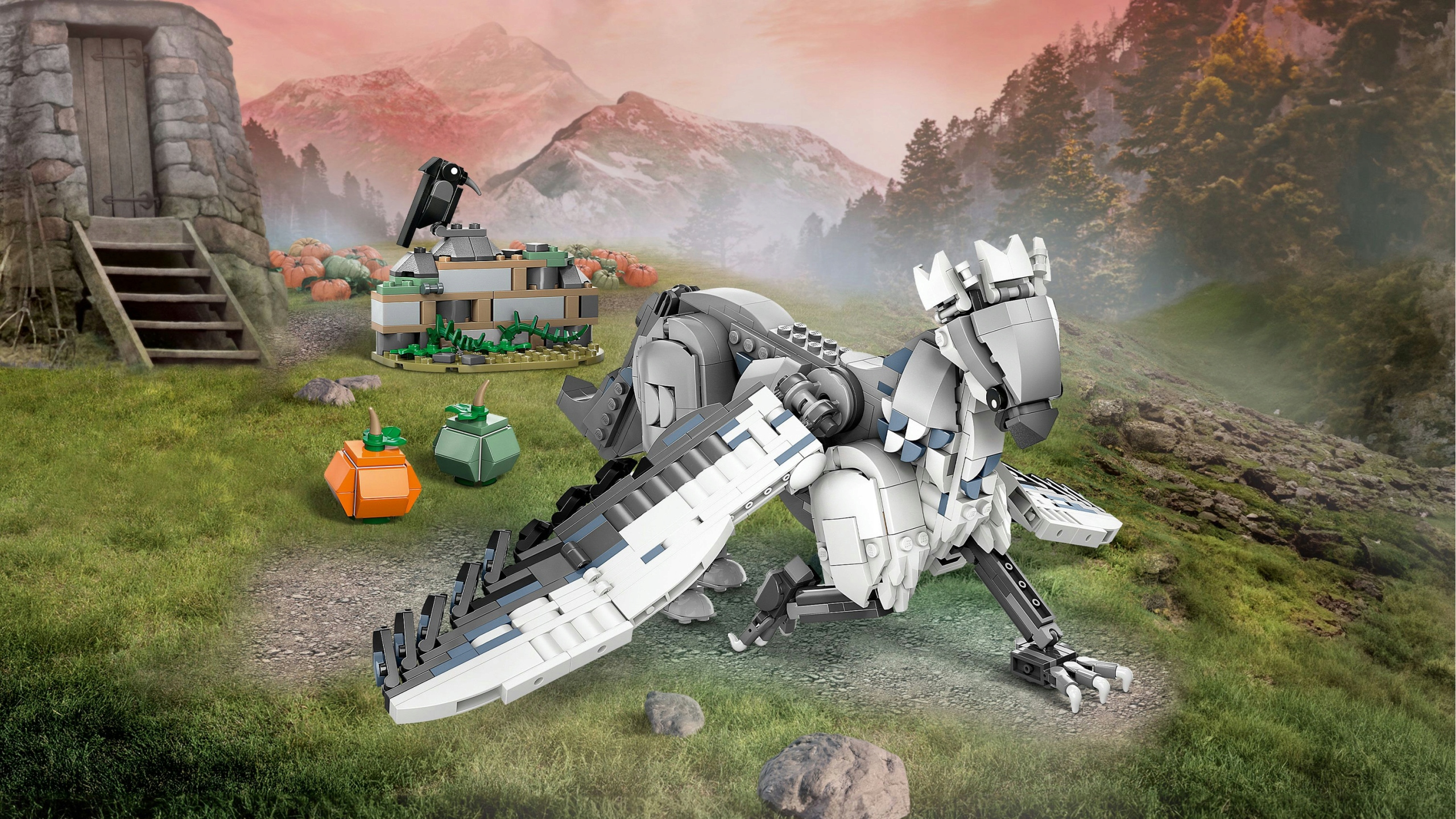 - interesting accessories - this set includes the Hagrid garden section to build with stone wall, as well as two pumpkins to build and a bird figurine