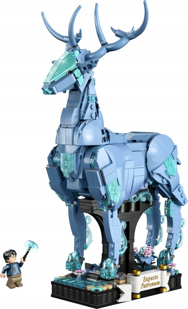 - Олень-патронус — має рухливі ноги, напівпрозорі світло-блакитні елементи для містичного вигляду та інтегровану підставку з декоративними елементами та місцем для Harry Potter™ мініфігурка .