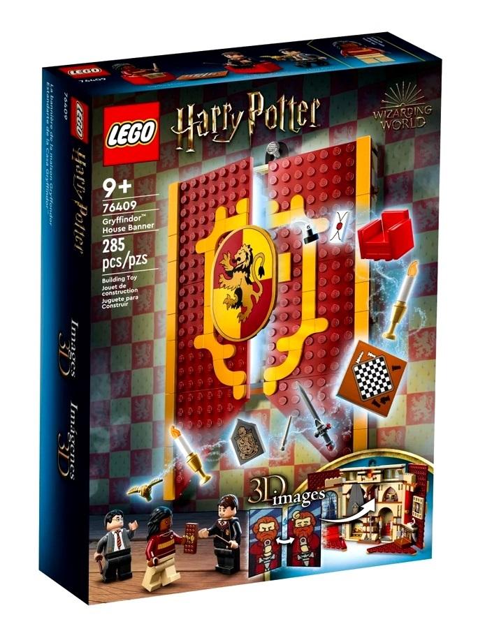 Шанувальники Гаррі Поттера ™ можуть показати свою гордість від будинку Gryffindor ™ завдяки цьому прапору, побудованому з блоків Lego® (76409). Це чудовий подарунок щодня для дітей з дев'яти років. Він містить плитку з друком з гербним покриттям і вішалкою, завдяки якому ціле гордо представлено на стіні. Крім того, прапор відкривається, показуючи чарівну копію загальної кімнати Гриффіндора з реалістичними деталями, такими як камін, сидіння та шахова дошка. Набір для об'єктива -ковзання створює магічні 3D -ефекти, включаючи зображення Sirius Black ™, що з'являється в каміні, і трофей із зображенням першого чи четвертого місця. Він містить мініфігури Гаррі Поттера, Анджеліна Джонсон та Невілл Лонгботтома ™, а також «Золота свічка та меч Gryffindor ™», щоб грати в ролі. Вони можуть принести та обертати модель у 3D, зберегти набори та відстежувати прогрес.