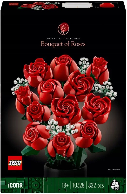 Ви отримаєте задоволення, збираючи цей букет LEGO. Це десяток червоних троянд, серед яких чотири розквітлі, чотири розквітлі та чотири бутони з довгими зеленими стеблами для розміщення у вазі, а також чотири гілки гіпсофіли з маленькими білими квітами. Цей букет, який легко зібрати, стане елегантною прикрасою для будь-якої кімнати та може поєднуватися з іншими наборами з ботанічної колекції LEGO.