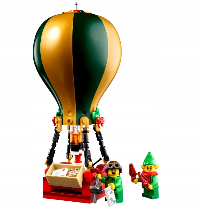- Вміст набору – моделі включають пошту Санти, повітряну кулю, сортувальник листів, сцену підлідної риболовлі, різдвяну ялинку, покажчик, поштову скриньку, а також мініфігурку Санти та 4 фігурки ельфів