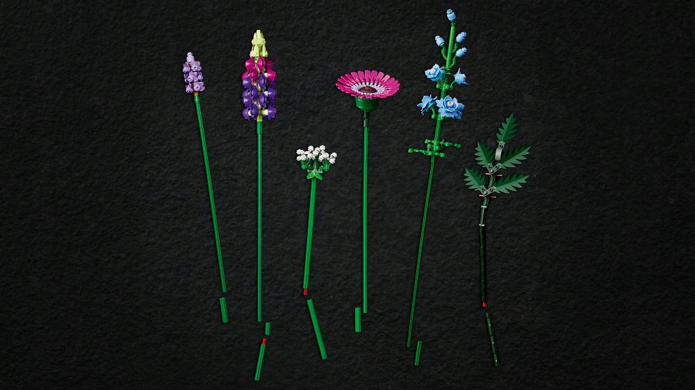Подивіться, як розквітає творчість. Цей букет польових квітів, повністю виготовлений із деталізованих кубиків LEGO, містить вісім видів квітів на регульованих стеблах. Початківці флористи та любителі квітів можуть годинами створювати та відкривати квіти, натхненні волошками, лавандою, валлійськими маками, деревною кервелью, шкірястою папоротю, герберами, дельфініумами та люпинами. Коли модель буде готова, квіти LEGO можна помістити у вашу улюблену вазу, щоб створити чудовий центр, який поширить зерно радості в будь-яку кімнату.