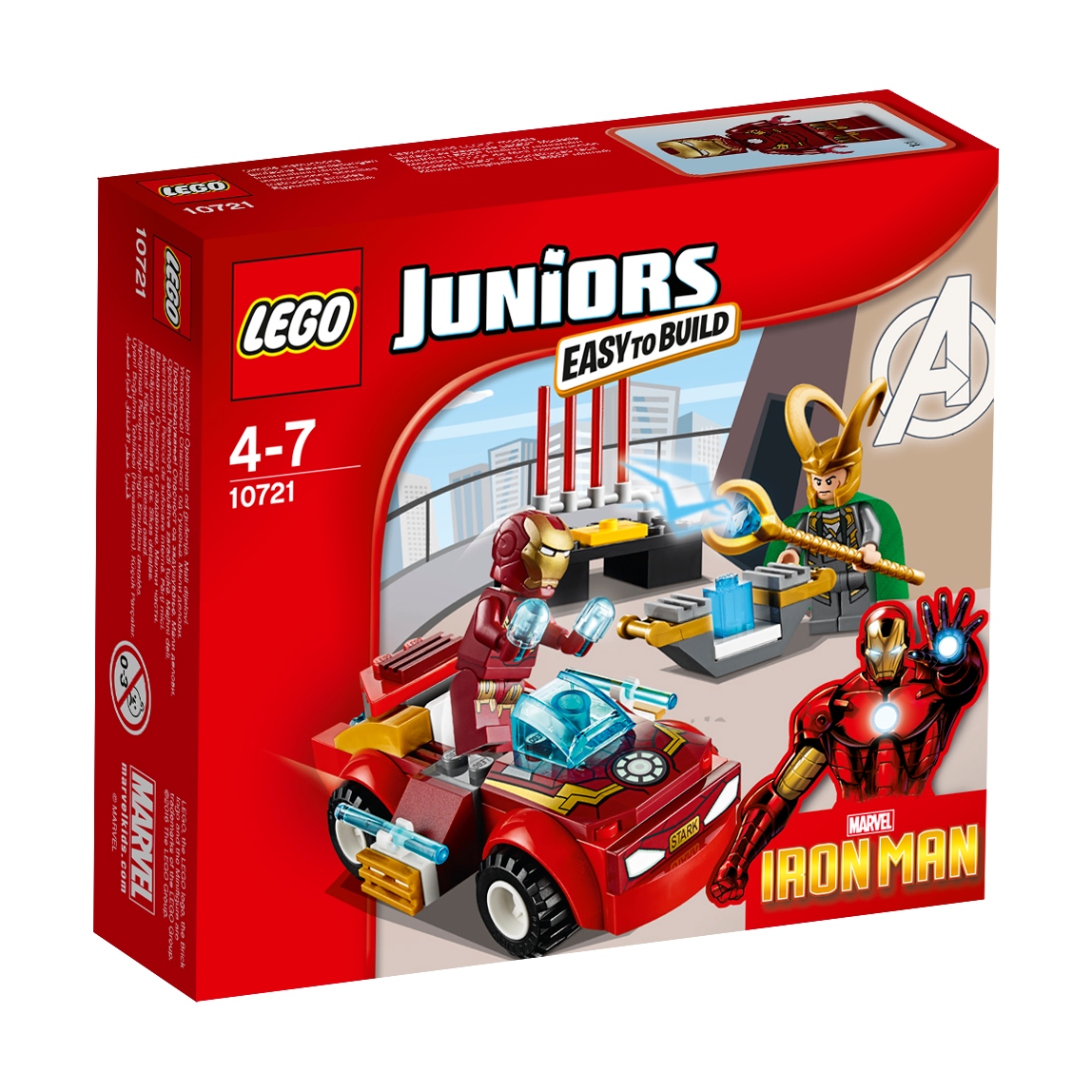 У Локі є злий план . Він хоче викрасти космічний куб і почати ще одну нищівну війну. Але Залізна Людина цього не дозволить. Він уже мчить на своїй незвичайній машині, щоб перешкодити мерзенному вчинку Локі. Чи переможе унікальний костюм Залізної людини скіпетр Локі? Який герой переможе? Все в ваших руках. Набір включає 66 кубиків LEGO Juniors, рекомендований для дітей віком від 4 років. Їх легше зібрати, ніж традиційні кубики.