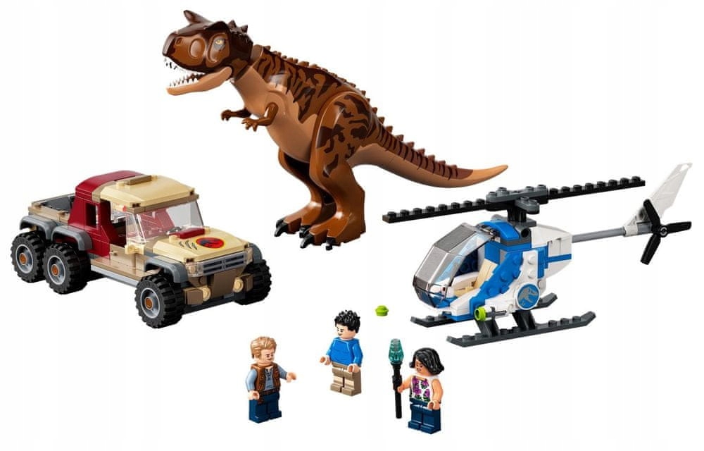 - Ігровий набір LEGO® Jurassic World (76941) дозволяє дітям грати в захоплюючу погоню за карнотавром і грати зі складним вертольотом і пікапом.