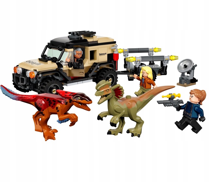 Вимкнено- дорожній транспорт і дві фігурки динозаврів, збірка Набір «Транспорт пірораптора та дилофозавра» (76951)це можливість для дітей пережити захоплюючі пригоди, граючись.