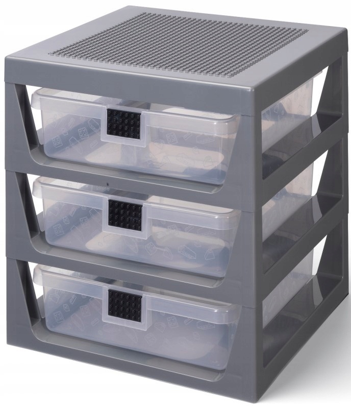 LEGO КОНТЕЙНЕР КНИЖКОВА ПОЛИЦЯ З 3 ЯЩИКАМИ + ПЛИТКА СІРИЙ