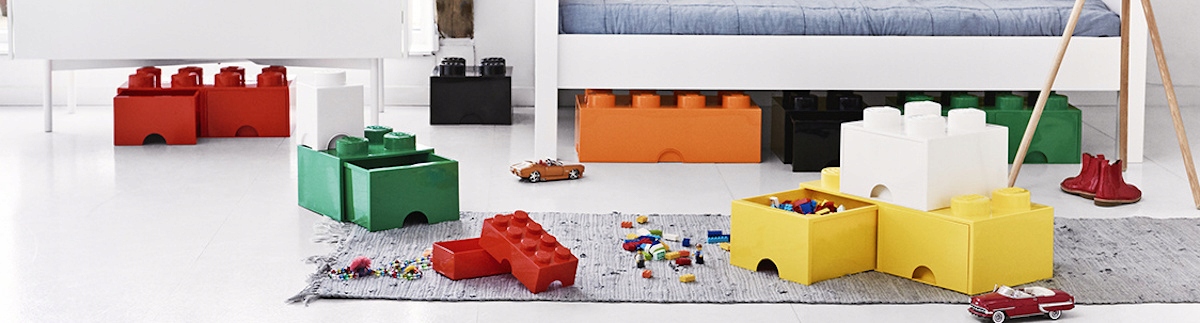 Великий контейнер у формі класичної цегли LEGO® допомагає організуйте дітей у веселій кімнаті.