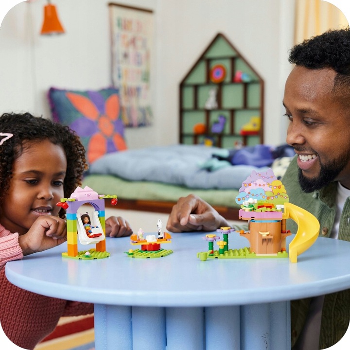 Відкрийте для себе чарівний світ лялькового будиночка Геббі з набором LEGO, де Габі та її друзі п’ють чай у будиночку на дереві! Набір заохочує до творчих ігор завдяки численним аксесуарам, таким як метелики та чашки, а також атракціонам, таким як гірка та карусель. Розвивайте уяву свого малюка за допомогою яскравих інструкцій та інтуїтивно зрозумілого додатку!