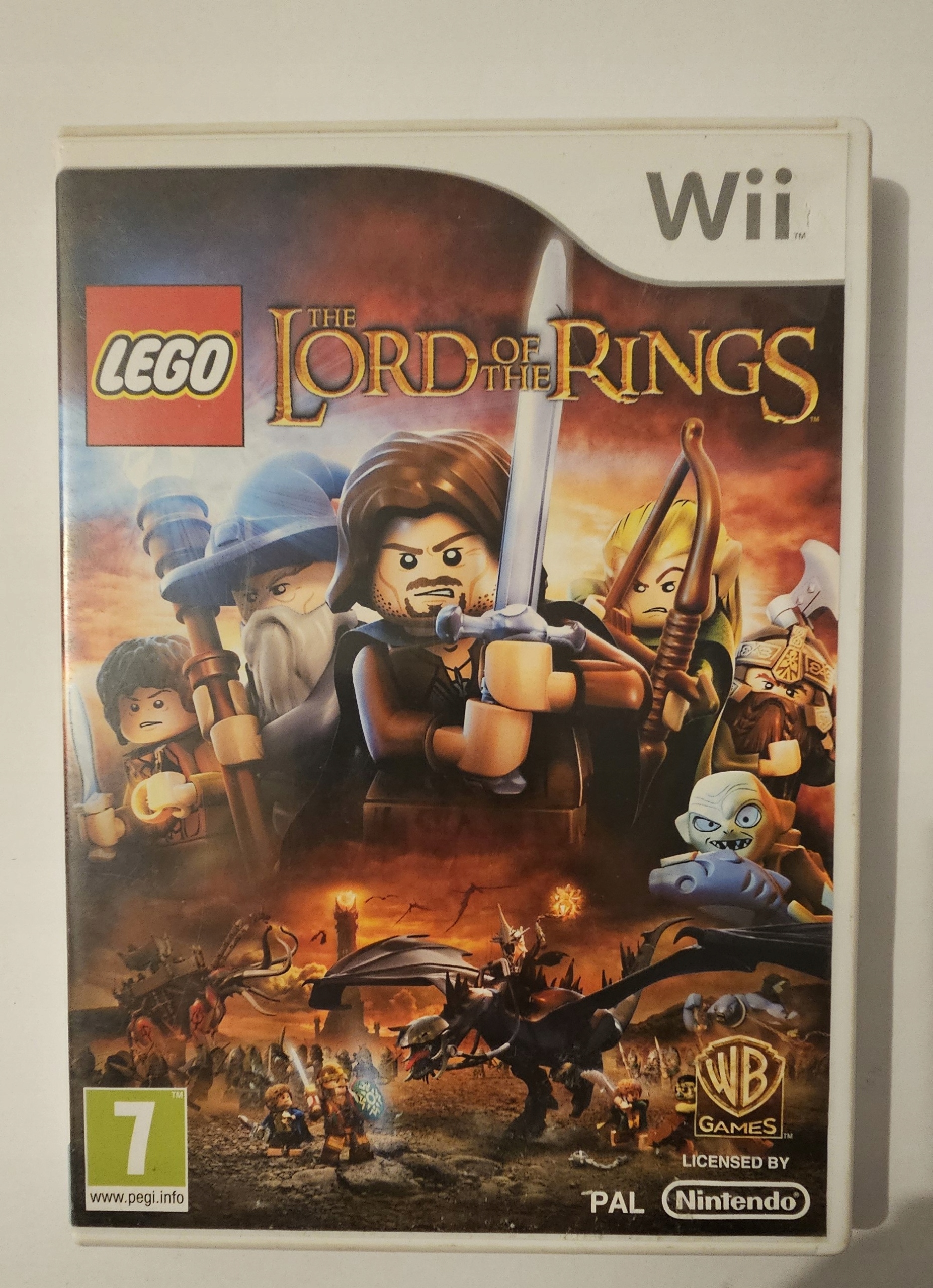 *LEGO Lord of the Rings* для Nintendo Wii — це пригодницька гра-екшн, яка переносить гравців у епічний світ Середзем’я в стилі LEGO. Взявши на себе роль улюблених персонажів трилогії *Володар перснів*, таких як Фродо, Арагорн і Леголас, гравцям доведеться протистояти могутнім ворогам, розгадувати головоломки та досліджувати величезні місця, натхненні фільмами. Гра радує жартівливим підходом до відомого сюжету, а також унікальною системою побудови, яка дозволяє створювати об'єкти LEGO під час ваших пригод. Завдяки локальній багатокористувацькій грі *LEGO Lord of the Rings* — це розвага для всієї родини, яка поєднує в собі елементи дії, співпраці та творчості в одному з найулюбленіших фантастичних всесвітів!