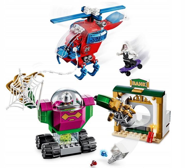 Конструктор LEGO® Marvel Spider-Man Menacing Mysterio (76149) знайомить дітей із конструюванням цегли LEGO®, грою з мініфігурками та крутими пригодами. Набір вертольота Людини-павука та робота Mysteria Окрім мініфігурок LEGO Spider-Man, Ghost Spider та Mysteria, цей набір супергероїв також включає вражаючий вертоліт-павук і потужний механізм Mysteria. Робот має колеса та рухомі руки, які можуть проникнути в банківське сховище. Діти можуть схопити Містеріо за допомогою встановлених на вертольоті «кігтів» Людини-павука або атакувати його механізм за допомогою павутини. Прості інструкції зі складання пояснюють кожен крок збирання іграшки, а безкоштовний додаток LEGO Life, який можна завантажити, також містить інтерактивні функції масштабування та обертання. Крутий набір бойовиків для дітей LEGO Marvel: транспортні засоби, механізми, будівлі, мініфігурки, зброя та гаджети допомагають юним супергероям відтворювати сцени з фільмів або створювати пригоди.