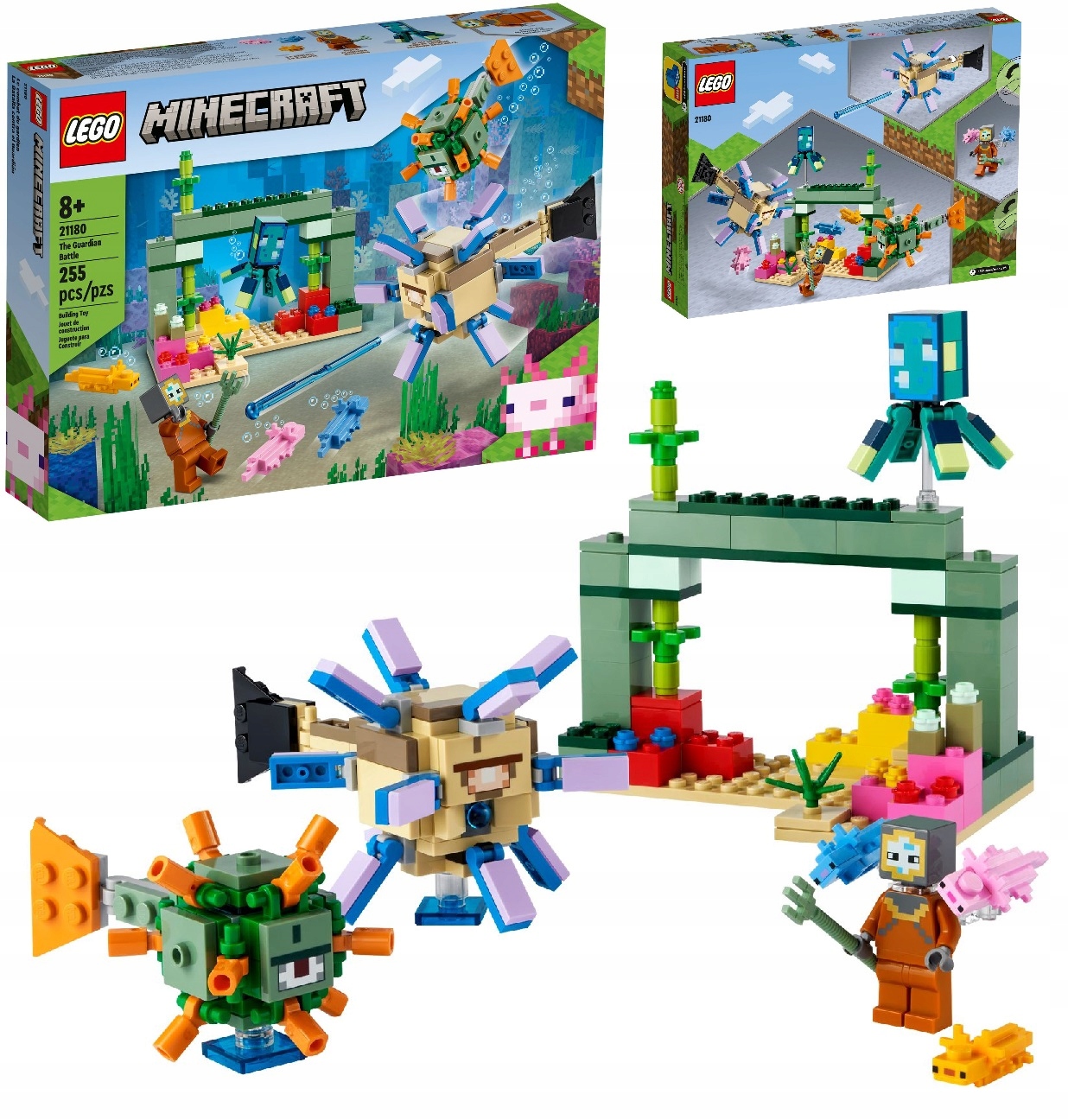 Цей підводний набір із серії Minecraft дає дітям захоплюючу океанську місію. Спочатку вам потрібно побудувати споруду на різнокольоровому кораловому рифі, а потім знайти скарб, але двоє відомих мобів Minecraft, охоронець істарший охоронець, точно стануть на заваді.