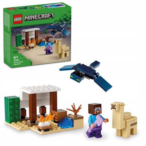 Для гравців віком від шести років цей набір LEGO® Minecraft® є першою конструкторською іграшкою для дітей, дія якої відбувається в біомі пустелі Minecraft. Експедиція Стіва в пустелю (21251) пропонує дітям побудувати будинок Minecraft у ворожому середовищі, а потім захистити його від нападу літаючого фантома.