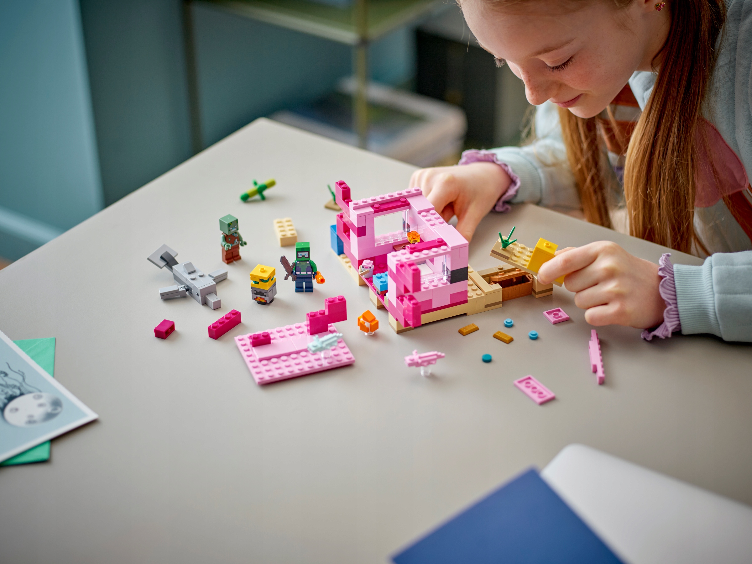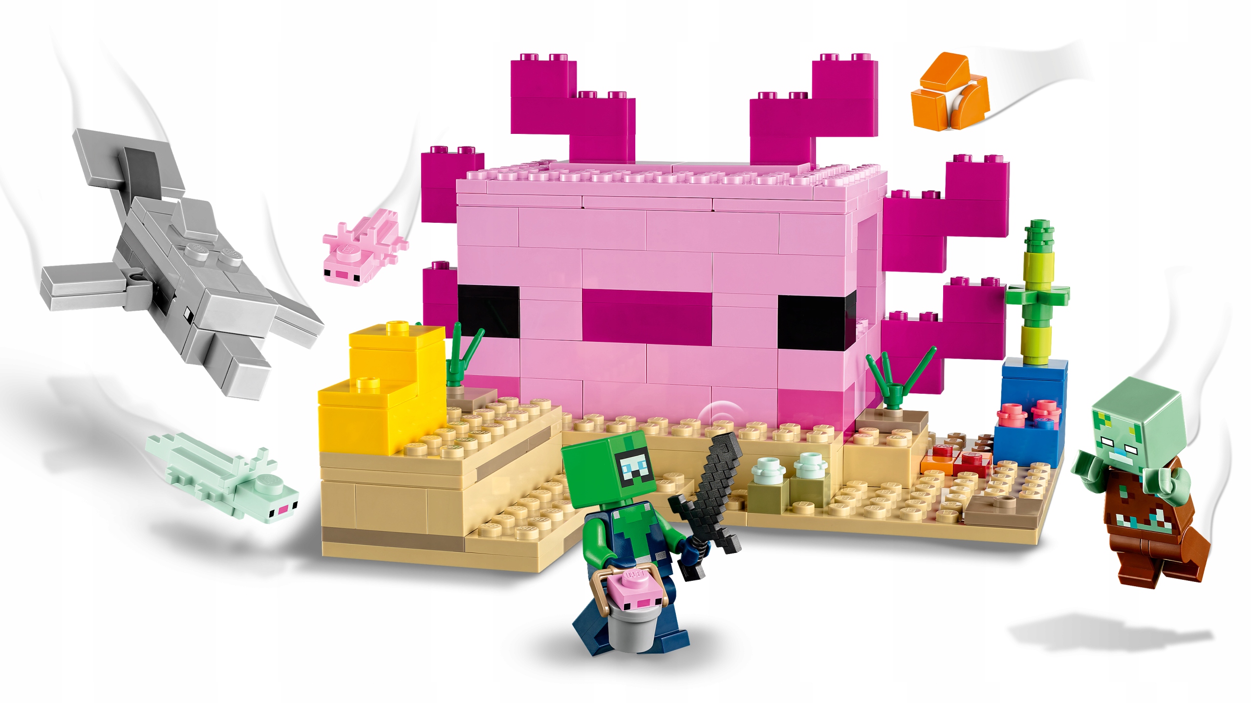 , секс: Дівчата 242 PCS. Axolotla. Тут ви зустрінете багато дружніх істот. Побачте дельфіна, який шукає скарби та аксолотл у відрі! Всередині є ще більше, включаючи плавання та губку для смоктання витоків води. Але коли він атакує утопію, настав час схопити меч і приєднатися до Аксолотла на захист глибокої бази!• Набори Minecraft® Live - Lego® Minecraft дозволяють дітям насолоджуватися грою по -новому. Мобус, сцени та елементи оживають завдяки творчим, практичним блокам LEGO