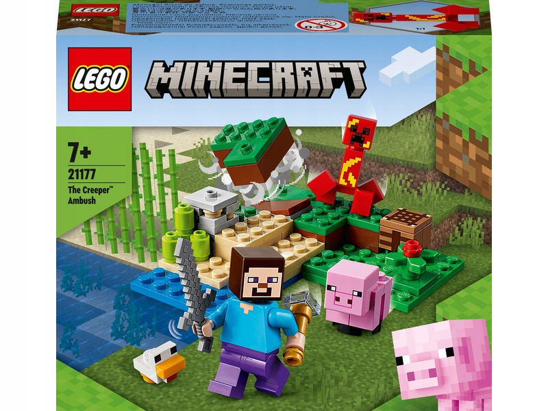 Захоплююча модель LEGO® Minecraft® Creeper™ Ambush (21177) наповнена персонажами, аксесуарами та функціями, які надихнуть дітей на фантастичні пригоди у світі Minecraft. Багато способів розважитися, діти можуть будувати щось із залізних блоків на столі для виготовлення, піклуватися про тварин або зіткнутися в битві з жахливим вибуховим Creeper™, який вибухає, коли натискається спеціальний блок
