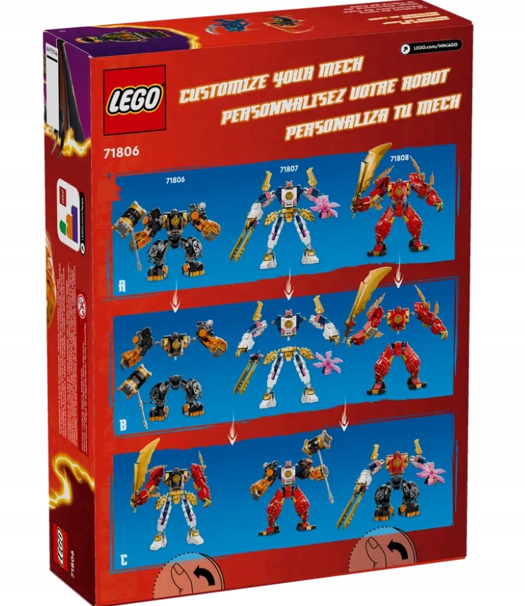 Перший мех в історії відбудови дозволяє дітям будувати власний мех! Його знімні ніжки, руки та тулуб можуть поєднуватися з частинами двох інших мех: Меха елемента Сорі (71807) та елементом землі Коула (71808) (продається окремо). Змішування та відповідність деталей може забезпечити дітям багато годин чудового задоволення, під час яких вони створять унікальну статуетку.