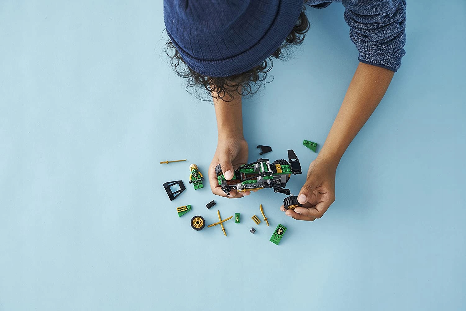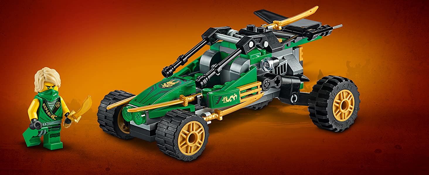 Стрибни в кабіну та готуйся до бою. Весела іграшка-баггі та мініфігурка Ллойда для розваг у гонках. Збірний NINJAGO® Legacy Jungle Speeder дозволяє дітям грати в рольові сцени битв Ллойда в Турнірі Стихій, але також може бути частиною колекції, щоб виставити на полицю. .
