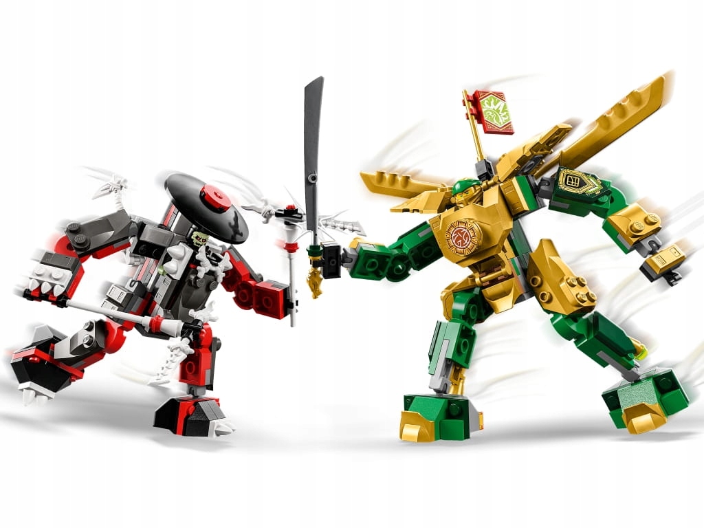 Набір включає два рухомих механізми, обидва озброєні крутою зброєю, щобдіти могли влаштовувати захоплюючі битви . Діти можуть вдосконалити механізм Ллойда золотими обладунками та крилами, щоб допомогти йому перемогти механізм-воїна-скелета, озброєного великою зброєю та капелюхом, який можна використовувати як щит.