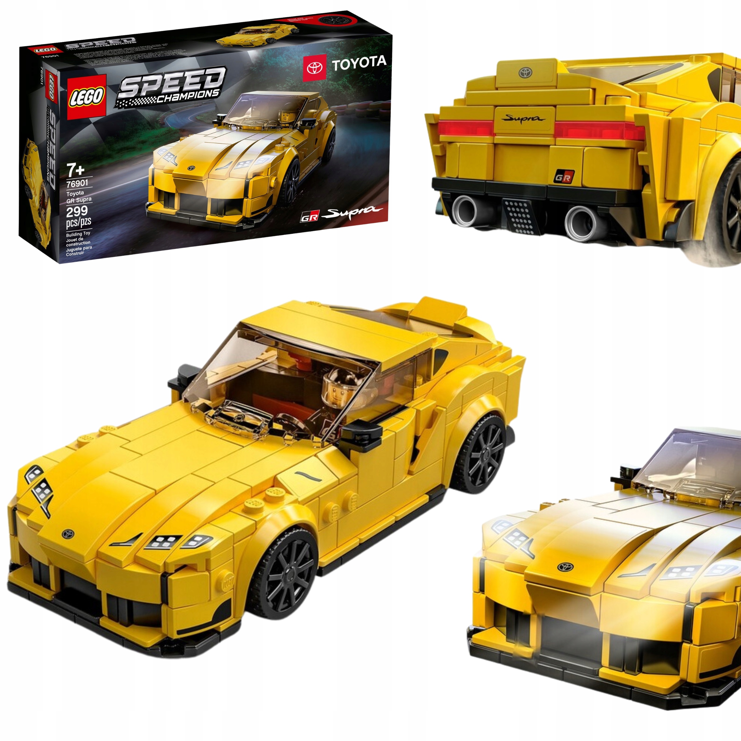 Репліка автомобіля Toyota GR Supra має приблизно 4 см у висоту, 16 см у довжину та 7 см у ширину. Ширше шасі з 8 шпильками забезпечує простір для двох мініфігурок усередині та багато автентичних деталей.