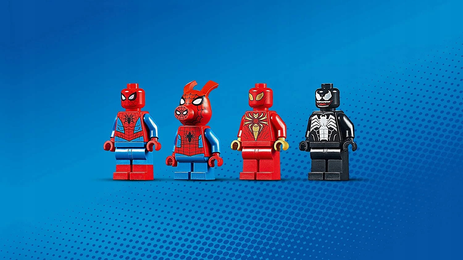 - Діти знову переживуть свої улюблені кіноісторії та придумають власні історії, борючись за яйце Венома з отруйним скелетом всередині, з Людиною-Павуком, Залізним Павуком, Павуком-Хемом і Веномом. Творча гра розгорнеться, коли діти створять Веномозавра з жахливими щелепами, а потім помістять у нього мініфігурку Венома. Потім вони зможуть посадити Людину-павука за кермо озброєного автомобіля з чудовою підвіскою, щоб протистояти лиходію, який стріляє чорними павутинами!