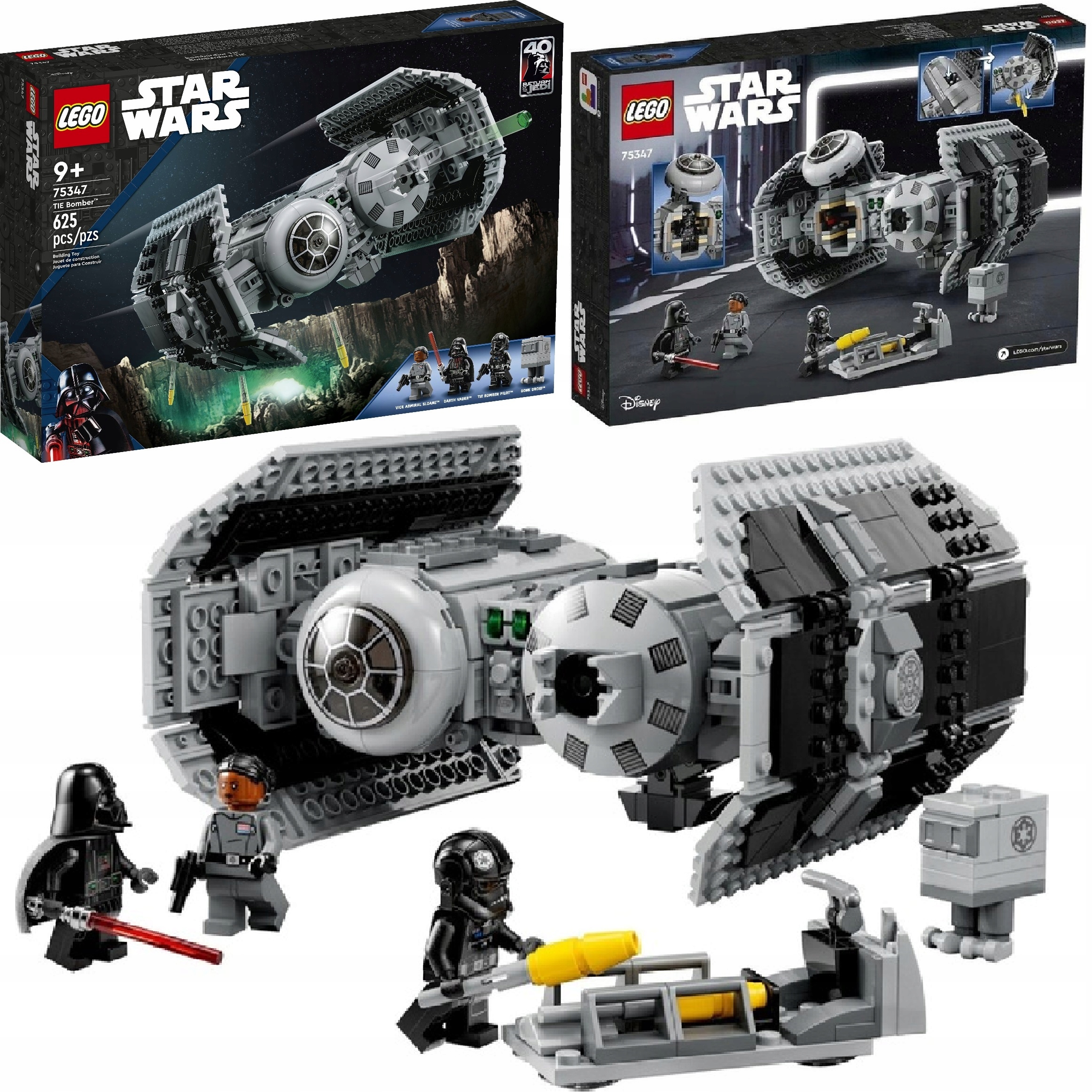 Створений для рольових боїв, TIE Bomber має функції кабіна, що відкривається, з місцем для мініфігурки,торпедний відсік із функцією скидання чотирьох торпед (у набір входить шість торпед, які можна зібрати) і два шпильки.