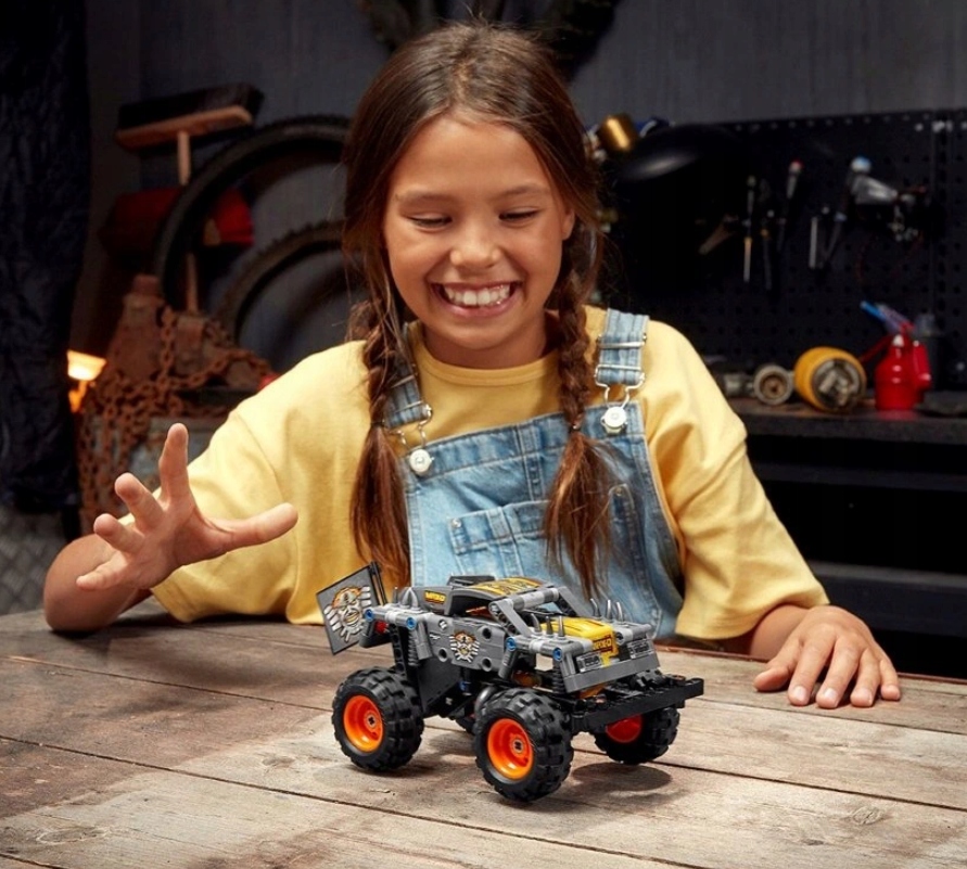Завершіть свою колекцію за допомогою дивовижного набору MASS DAM MAX-D® Technic Technic Monster, і перемога на Monster Jam® Arena буде вашою. поспішайте і виконайте акробатику з одним з найбільших вантажних автомобілів у світі , що є максимальним. Захоплюйтеся знаменитими прикрасами цього транспортного засобу у вигляді шипів та полум'я. Використовуйте привід, щоб вантажівка -монстр починається з високою швидкістю.