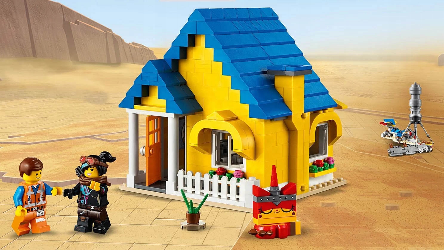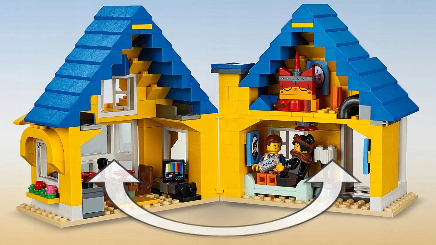 Будинок Еммета можна відкрити, щоб було легше грати всередині. У моделі є вхідні двері, що відкриваються, горище, дах, який можна зняти, щоб перетворити на ракету, а також сад із парканом, бочкою та квітами. Всередині є вітальня зі збірною кухнею, диваном, столом, плитою та когтеточкою для Воїна Кітті, а також різноманітні аксесуари: тарілка, кавова чашка, сковорода, радіо, бінокль, акордеон та контрольні лампи.