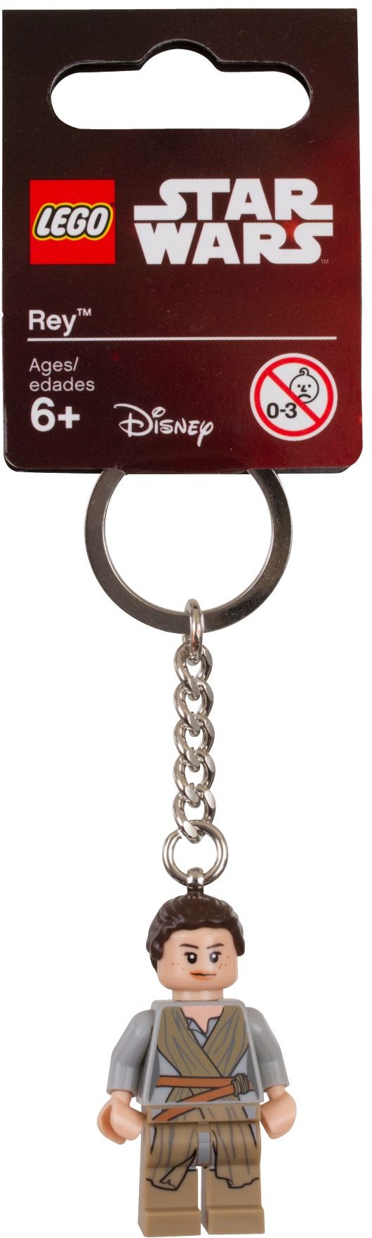 - Ключове кільце має оригінальну мініфігуру Rey, прикріплену до суцільного металевого ланцюга з колесом.