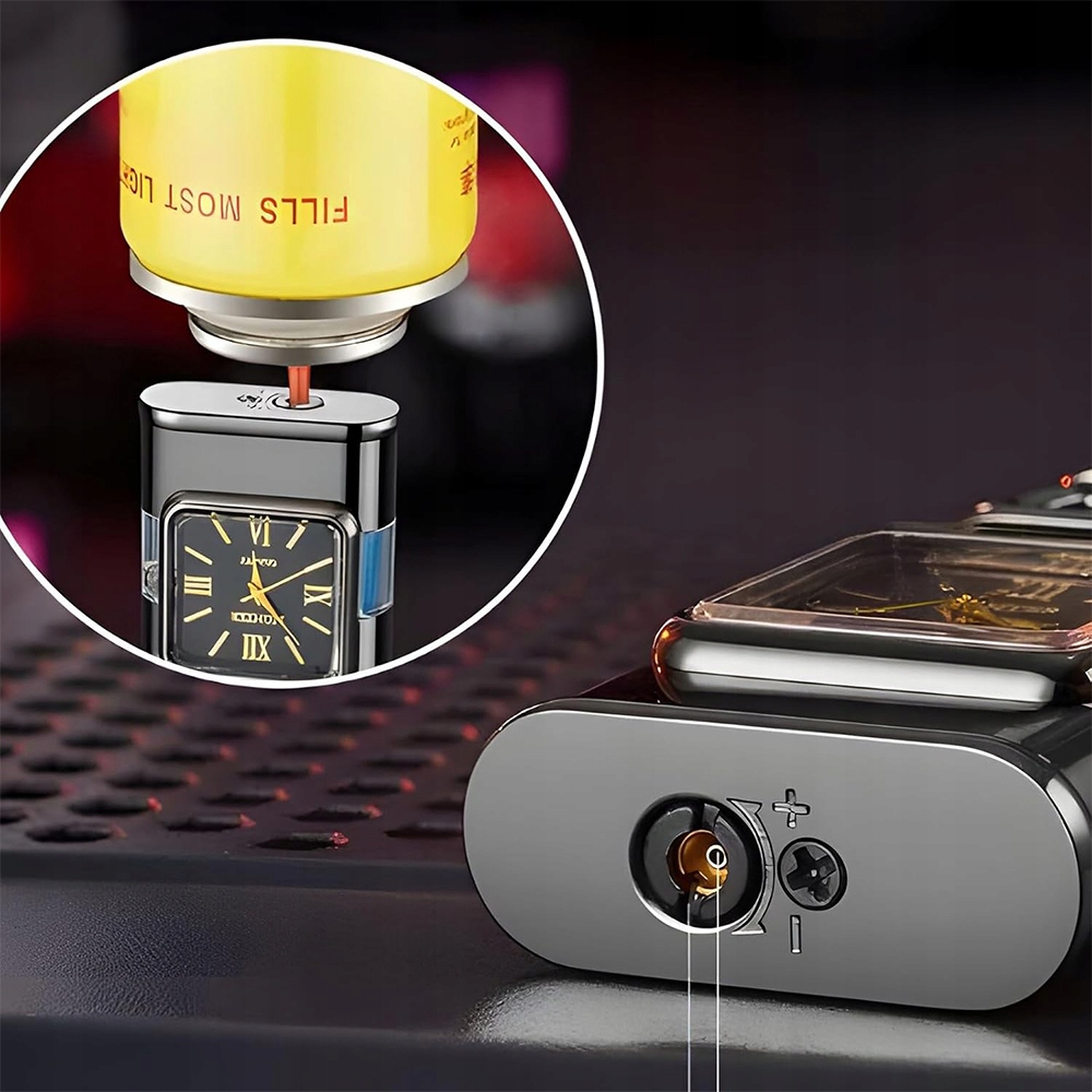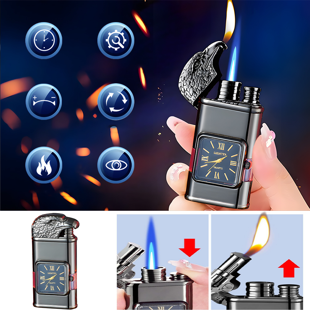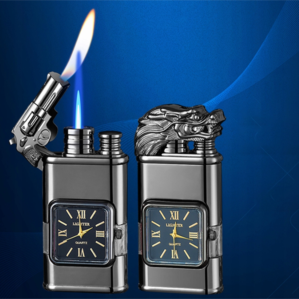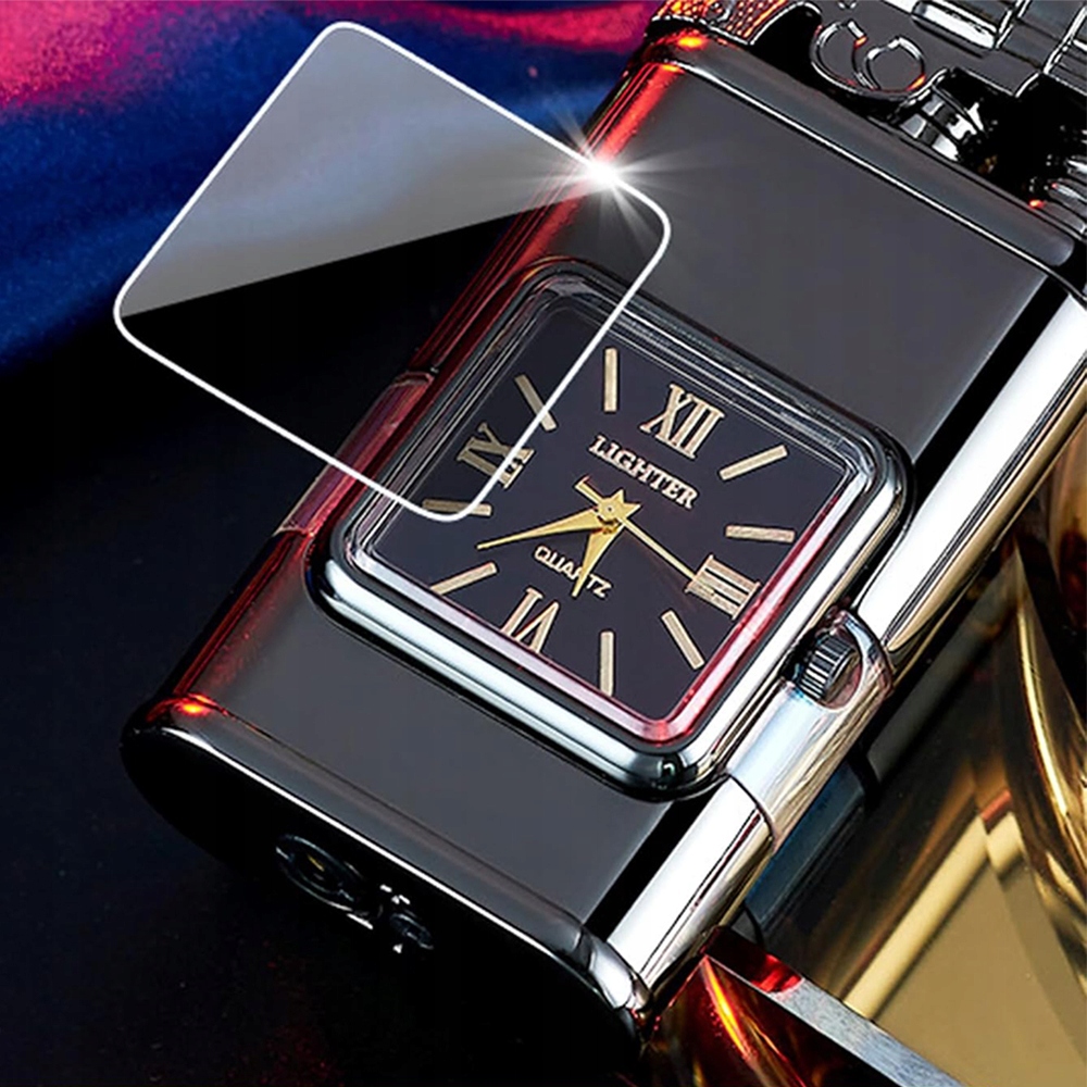 🚬Крута, унікальна запальничка, вітронепроникна, з 3D тисненим візерунком і елегантним квадратним кварцовим годинником