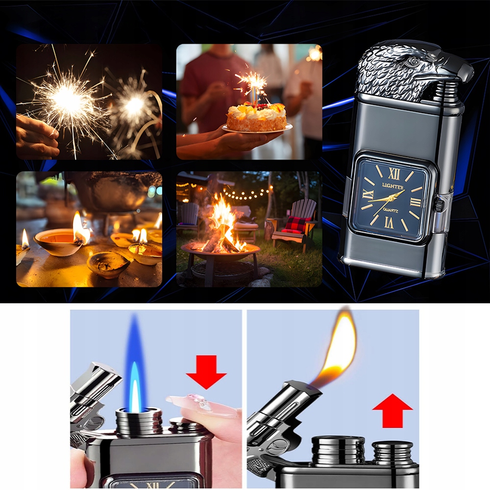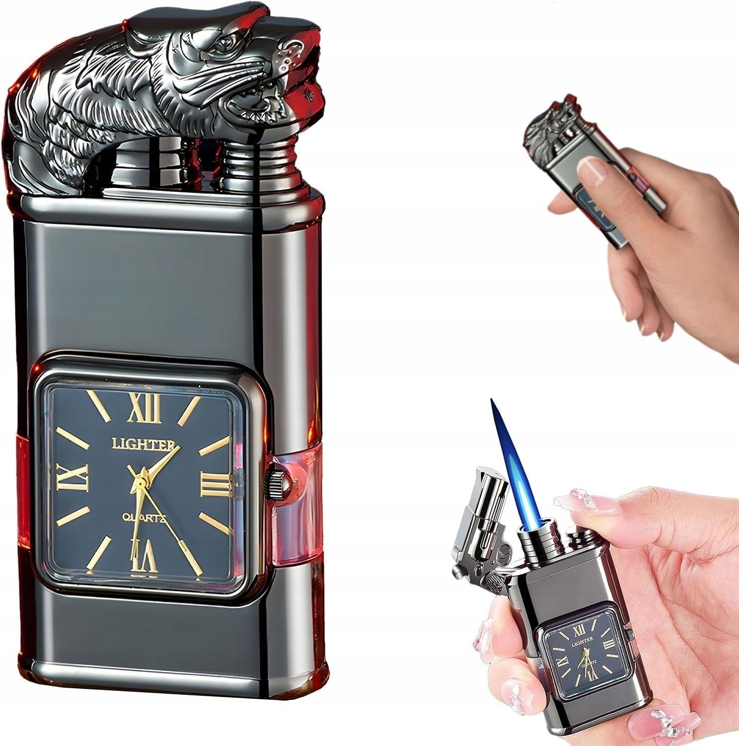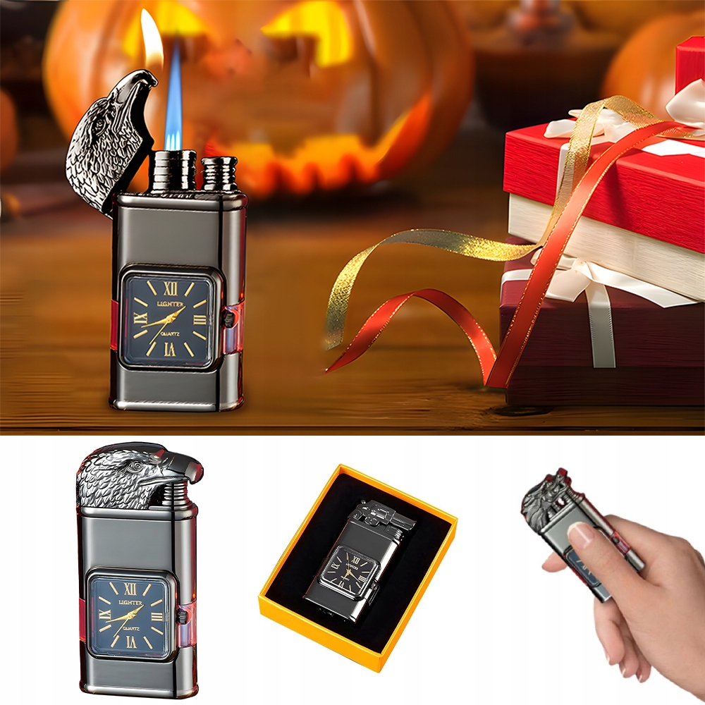 🚬Крута, унікальна запальничка, вітронепроникна, з 3D тисненим візерунком і елегантним квадратним кварцовим годинником