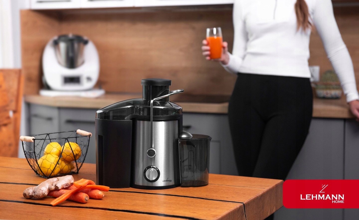 LEHMANN JUICER ВИСОКОШВИДКІСНА СОКОВИЖИМАЛКА ДЛЯ ФРУКТІВ І ОВОЧІВ 600 Вт ОТВОР 65 ММ