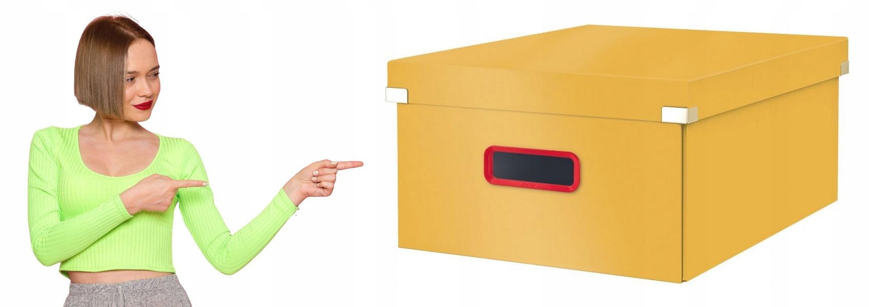 З колекцією Leitz Cozy ви почуватиметеся як удома, куди б вас не привели ваші професійні обов’язки. Мінімалістичний дизайн і дружні кольори колекції збагатять стиль вашого робочого місця. Великий ящик для зберігання Leitz Cozy зі зручною, стильною червоною рукояткою ідеально підходить для зберігання документів до формату A3 та інших великих предметів, таких як ноутбук або клавіатура. Він також ідеально підходить для пакування канцелярського приладдя в домашньому офісі або під час роботи за гарячим столом. Складна конструкція дозволяє зручно зберігати коробку, коли вона не використовується, і економить місце. Виготовлений з високоякісного картону, він ідеально підходить для організації вашого дому та офісу, щоб забезпечити ваше благополуччя та продуктивність протягом дня.